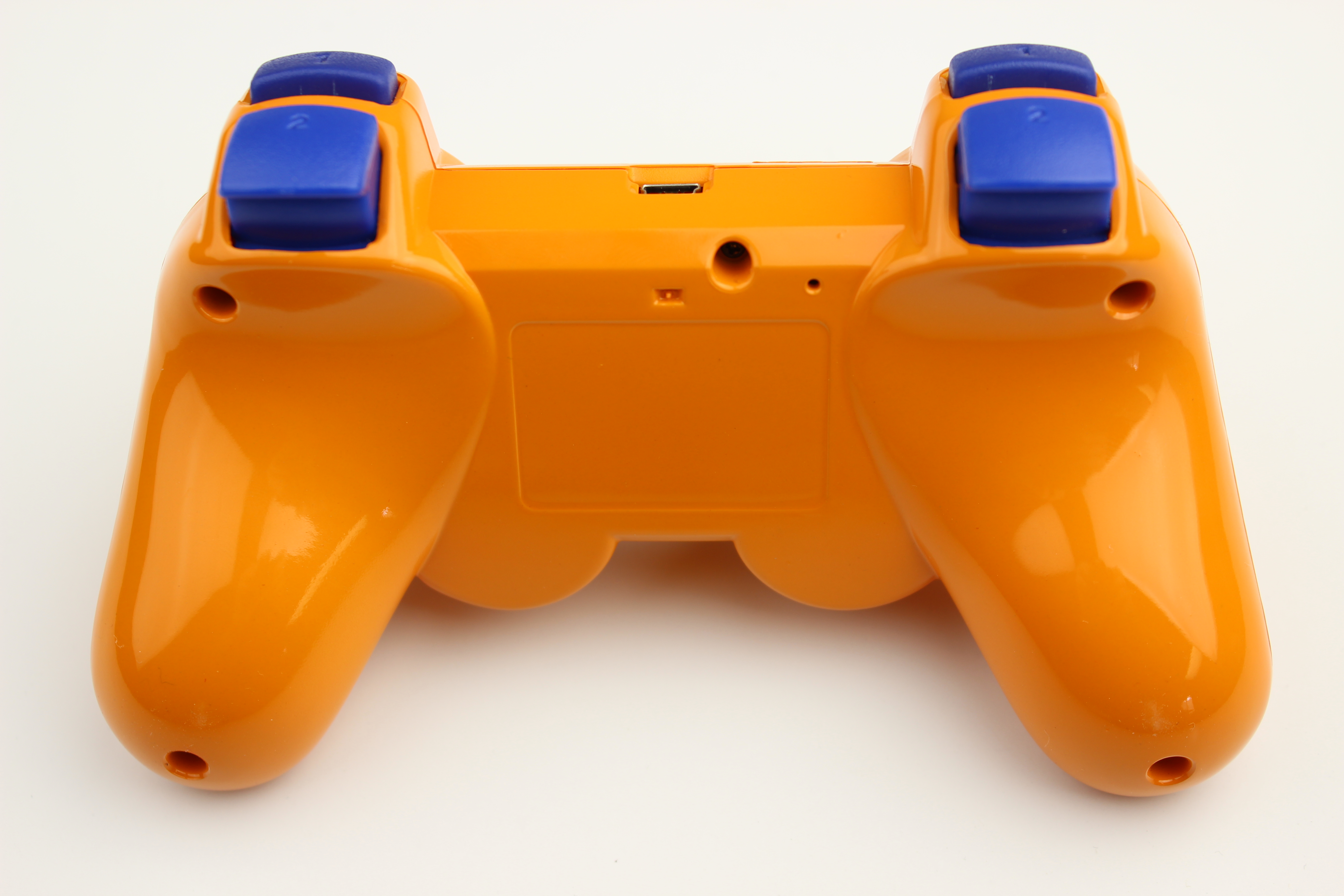 Orange PlayStation 3 Controller with Blue Buttons photos and movies