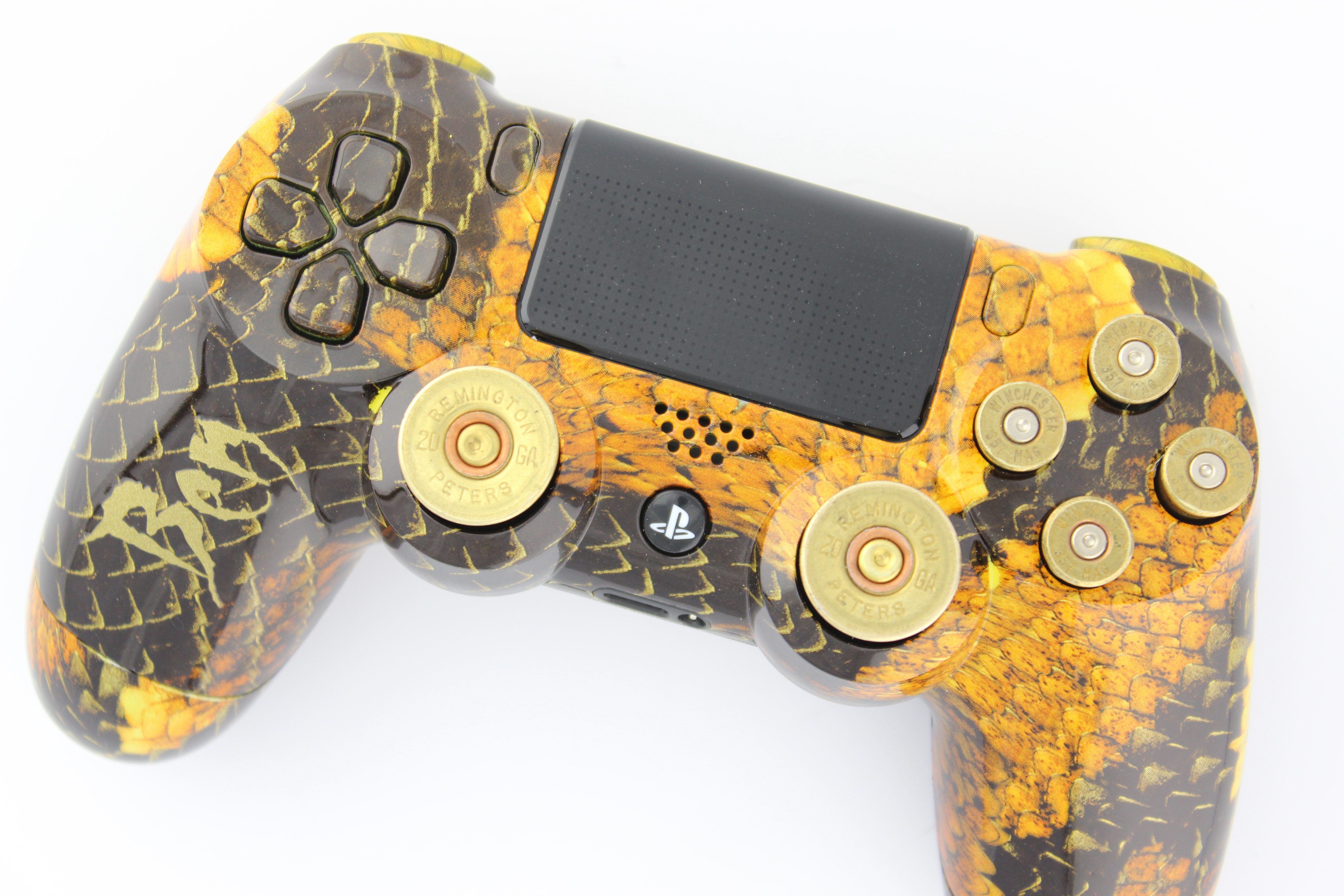 Bens Gold and Brown Rat Eater PlayStation 4 Controller with Brass Bullet Buttons photos and movies