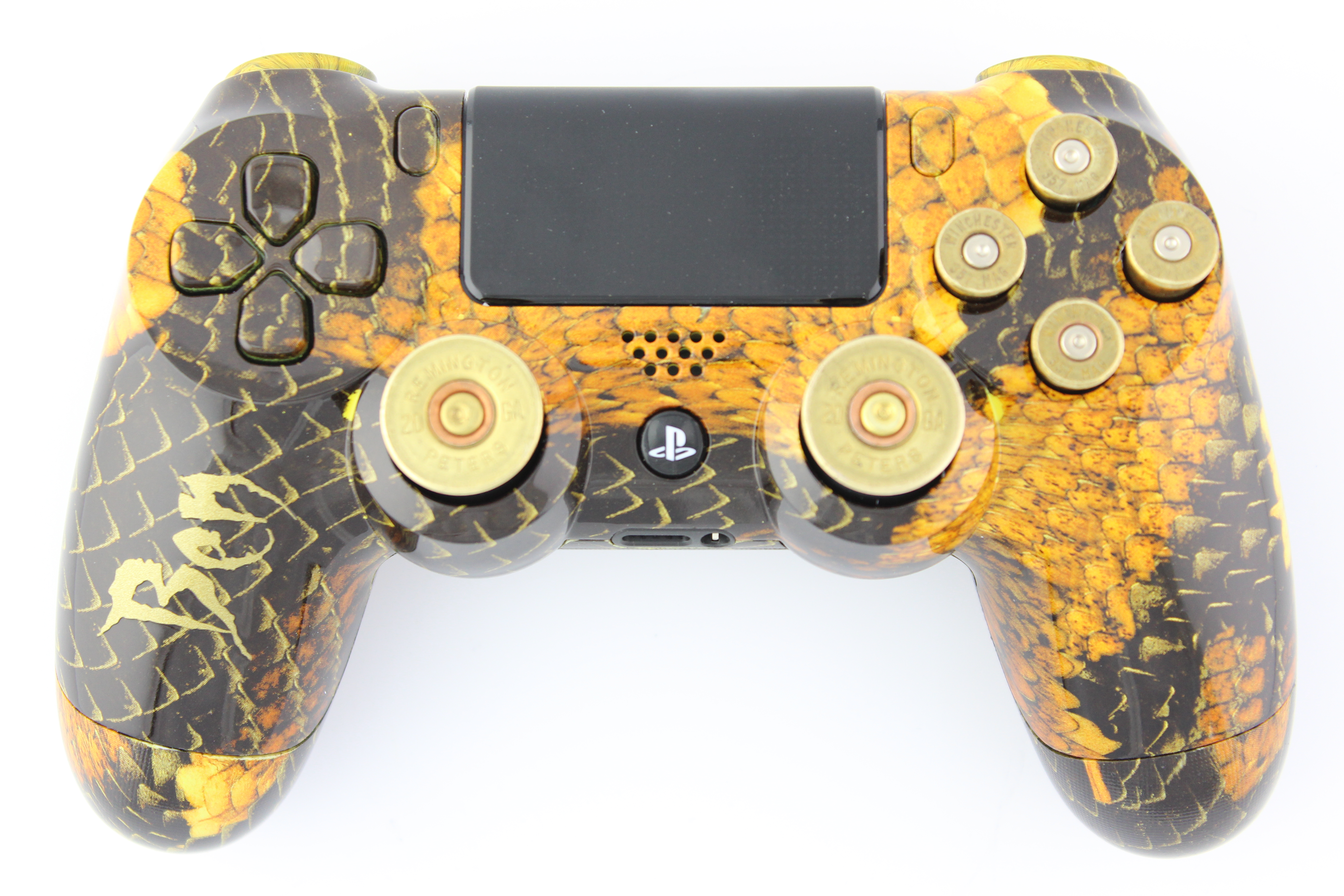 Bens Gold and Brown Rat Eater PlayStation 4 Controller with Brass Bullet Buttons 11