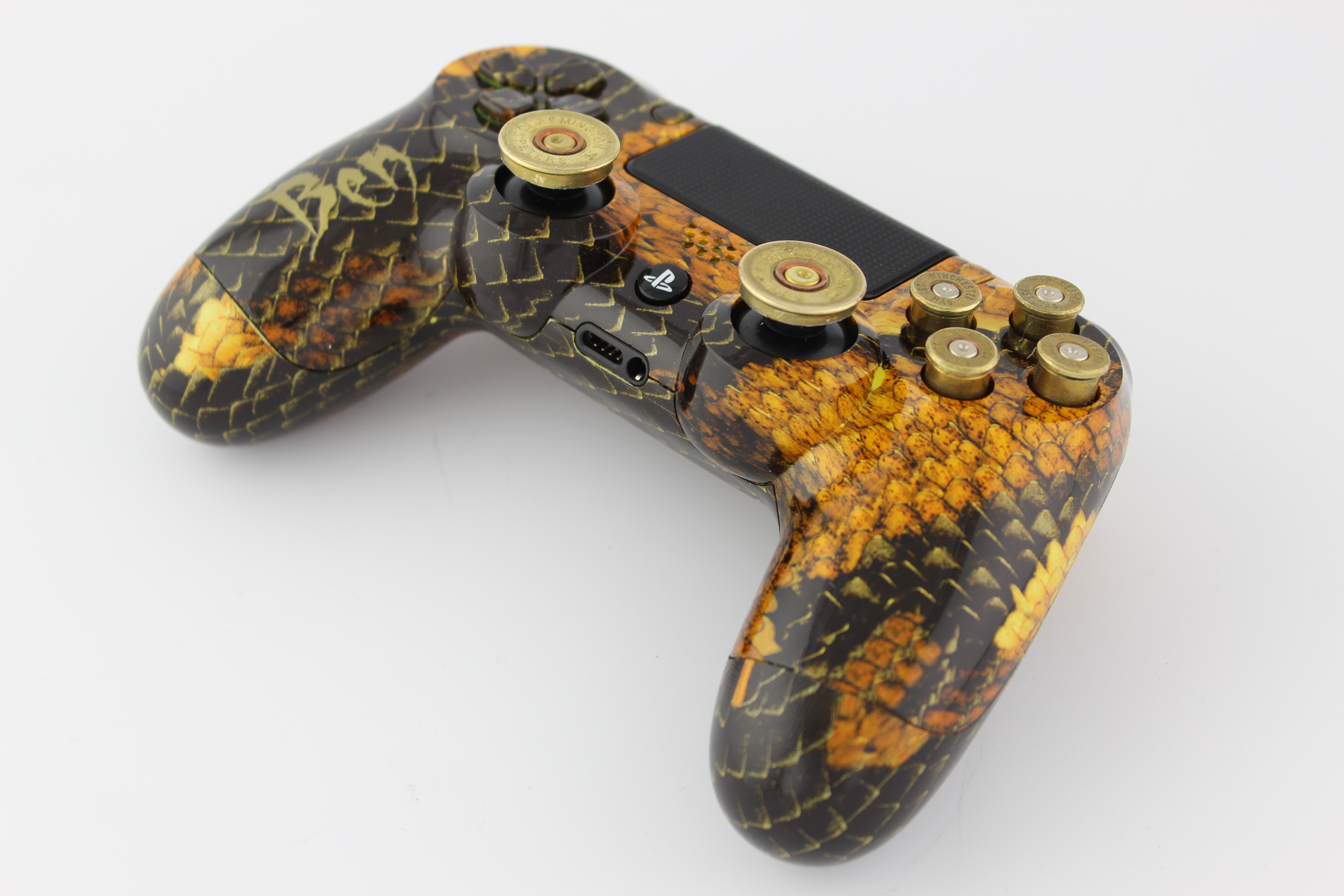 Bens Gold and Brown Rat Eater PlayStation 4 Controller with Brass Bullet Buttons 9