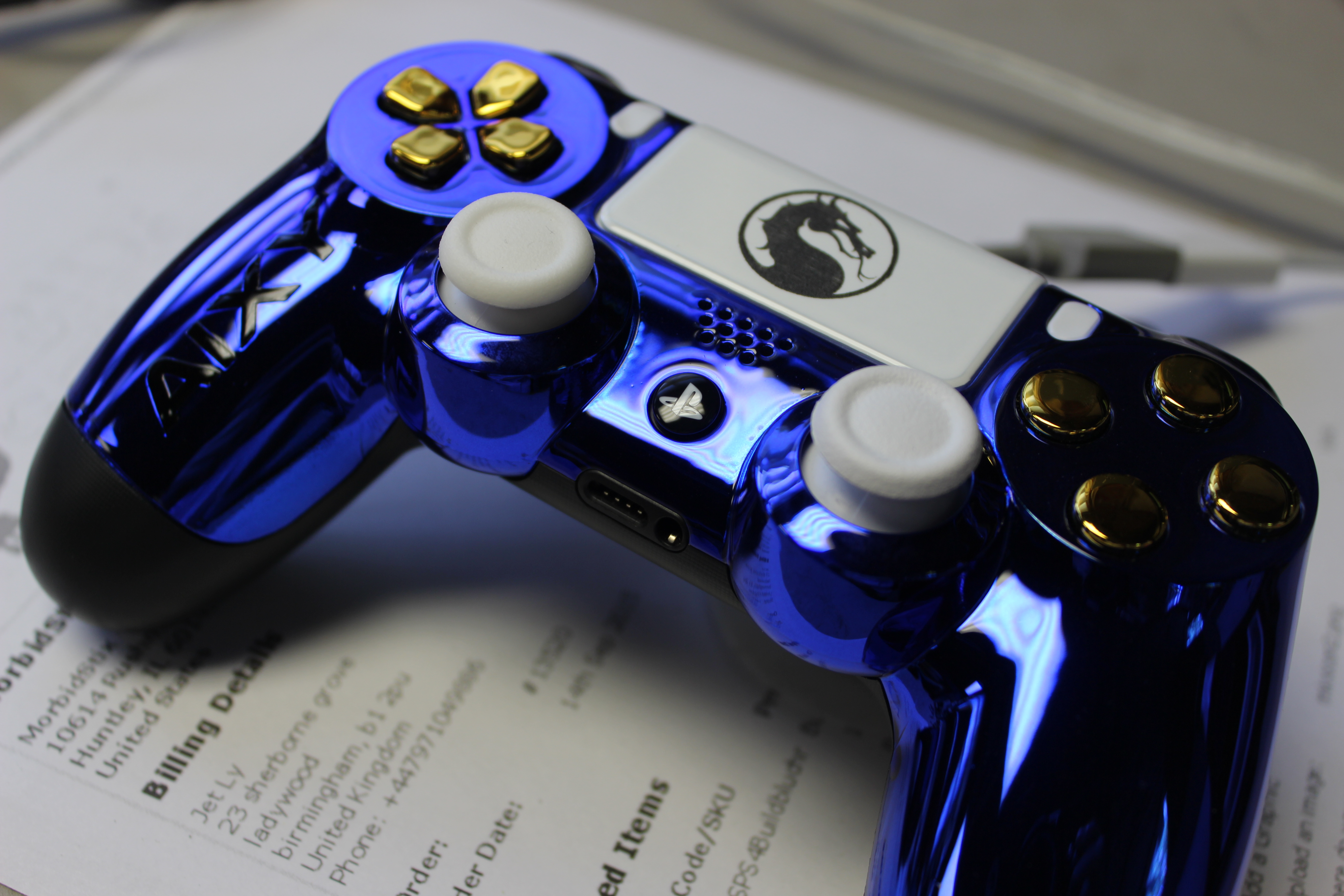 Blue Chrome Mortal Kombat PlayStation 4 Controller photos and movies