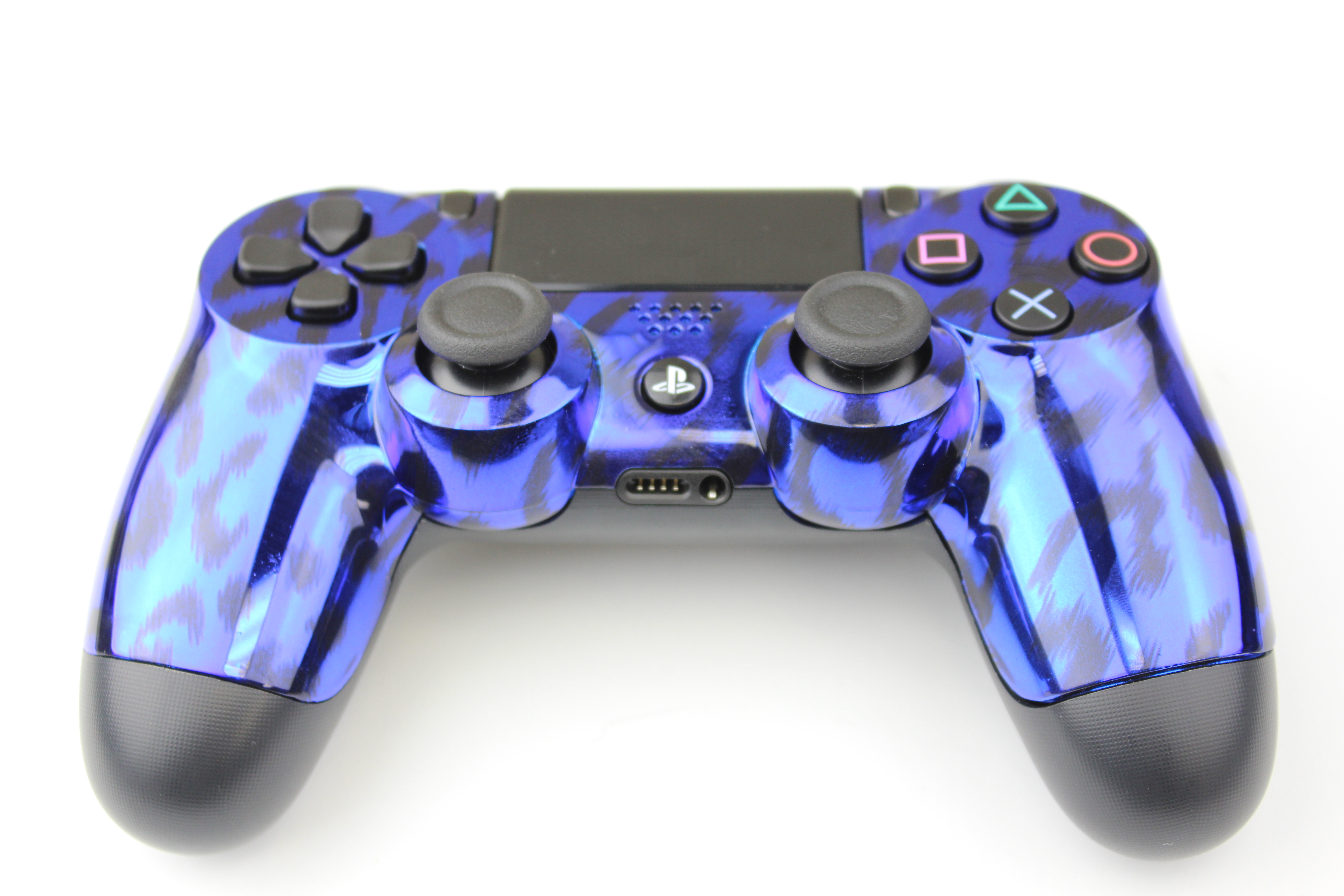 Blue Chrome Naughty Leopard PlayStation 4 Controller photos and movies