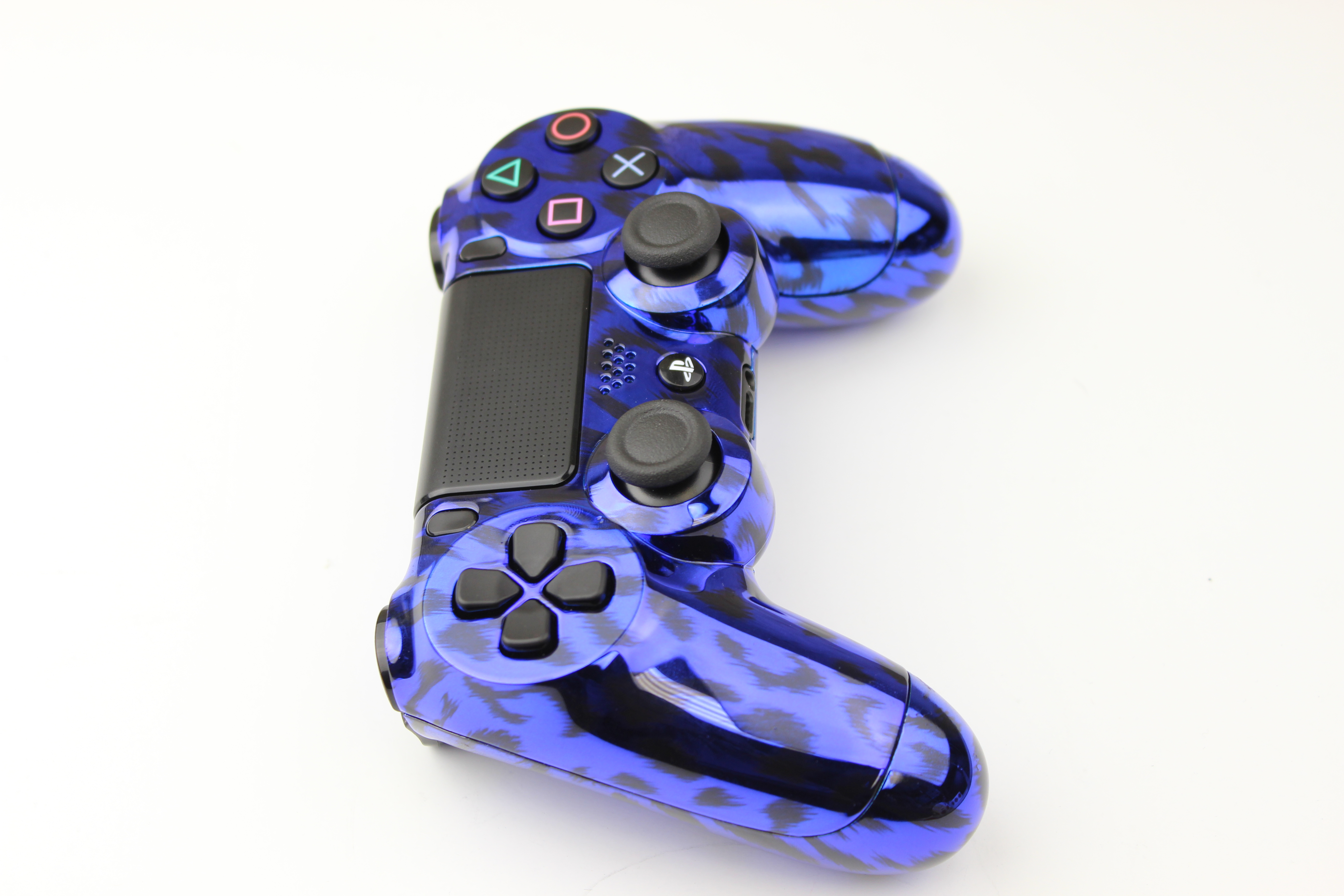 Blue Chrome Naughty Leopard PlayStation 4 Controller photos and movies