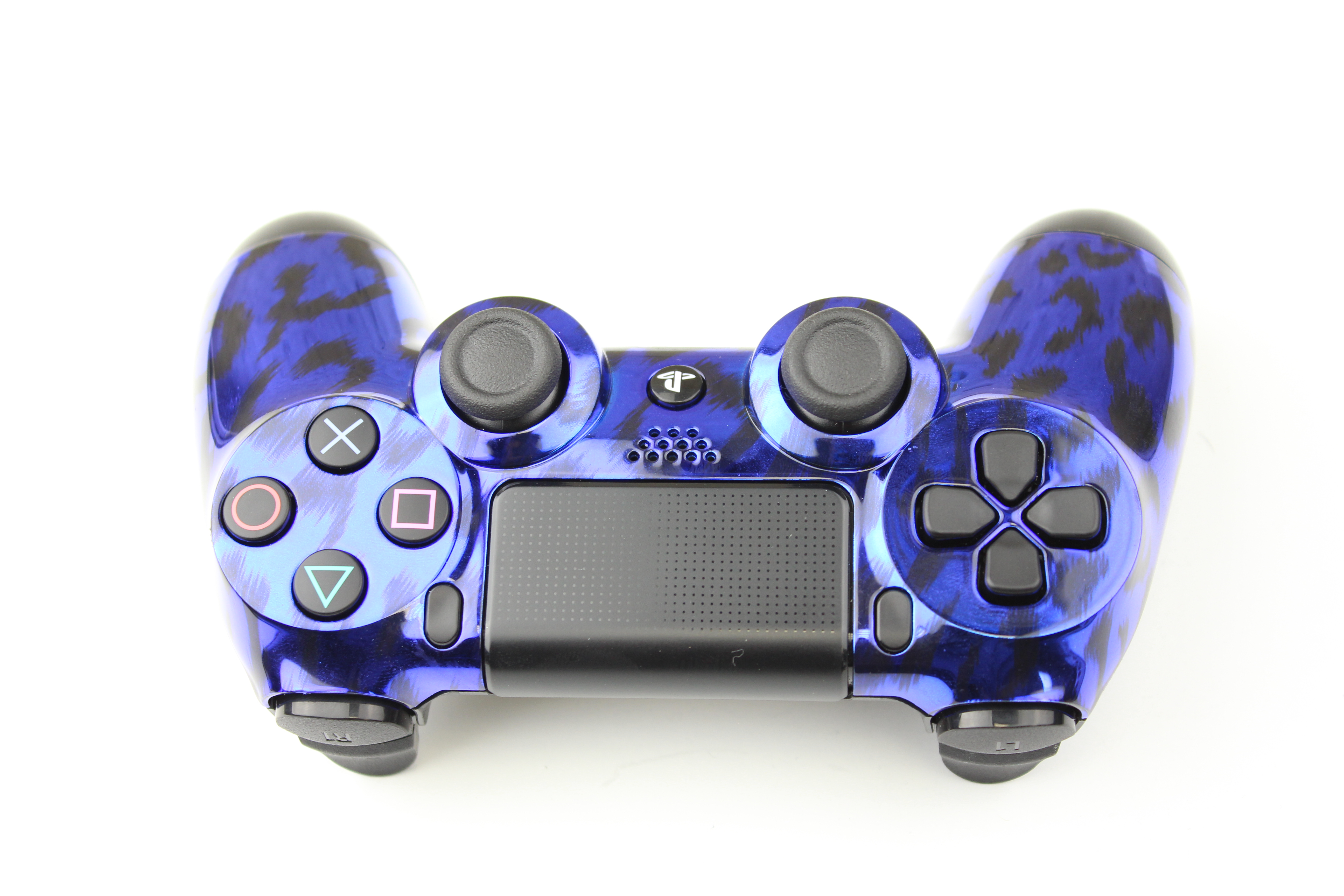 Blue Chrome Naughty Leopard PlayStation 4 Controller photos and movies