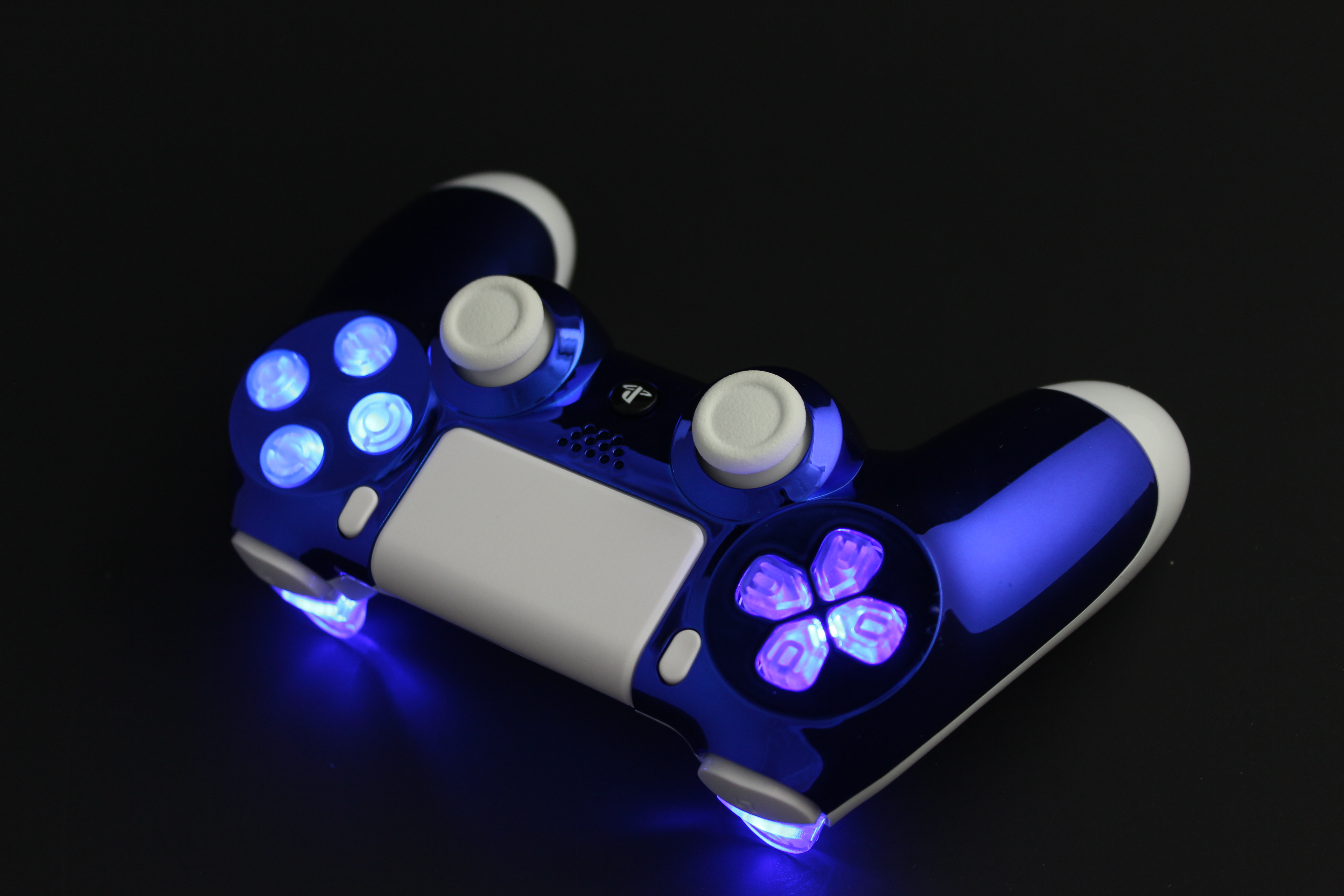 Bookmark and Share: Blue Chrome and White Lit PlayStation 4 Controller 5