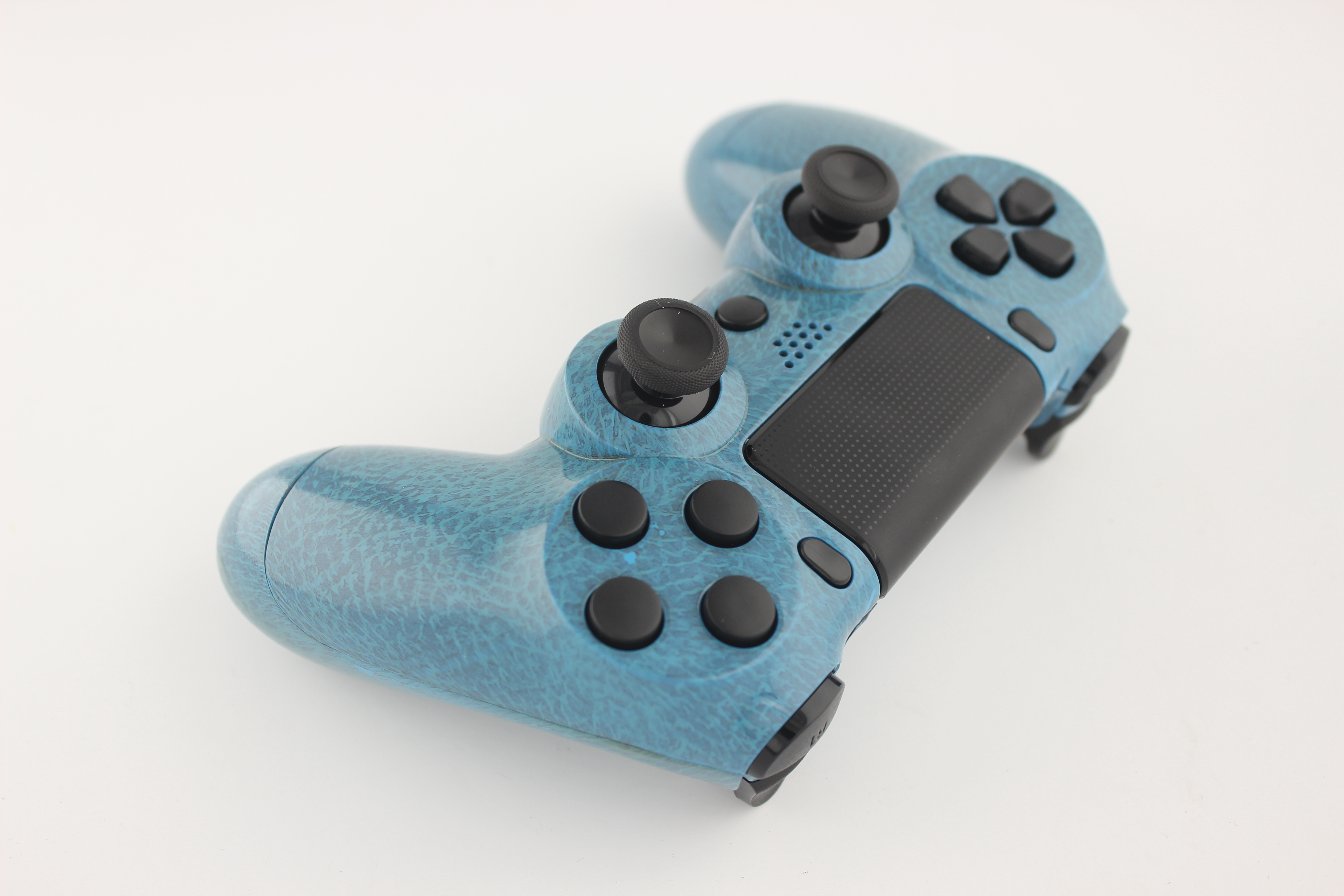 Blue Leather PlayStation 4 Controller with Black Buttons photos and movies