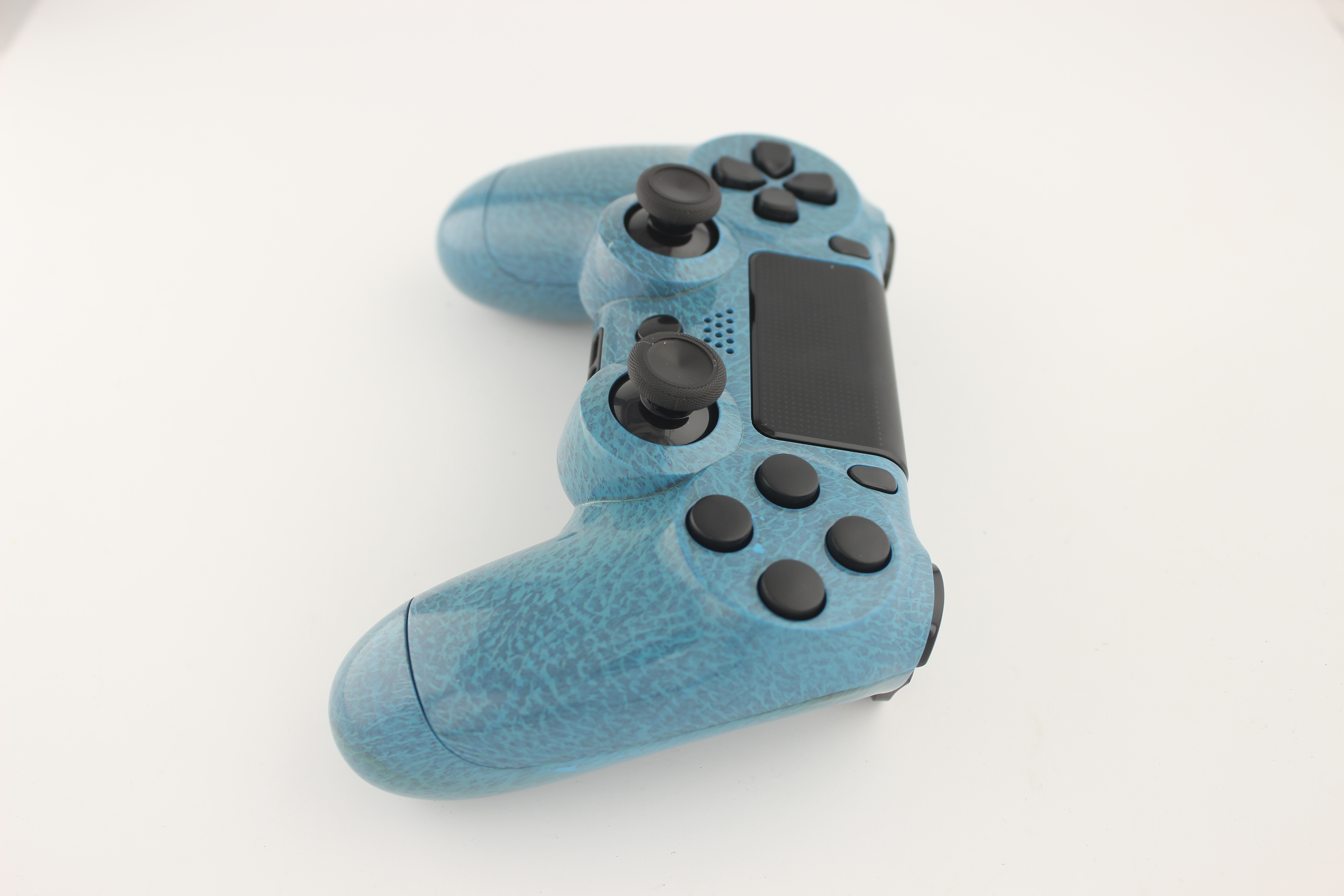 Blue Leather PlayStation 4 Controller with Black Buttons photos and movies