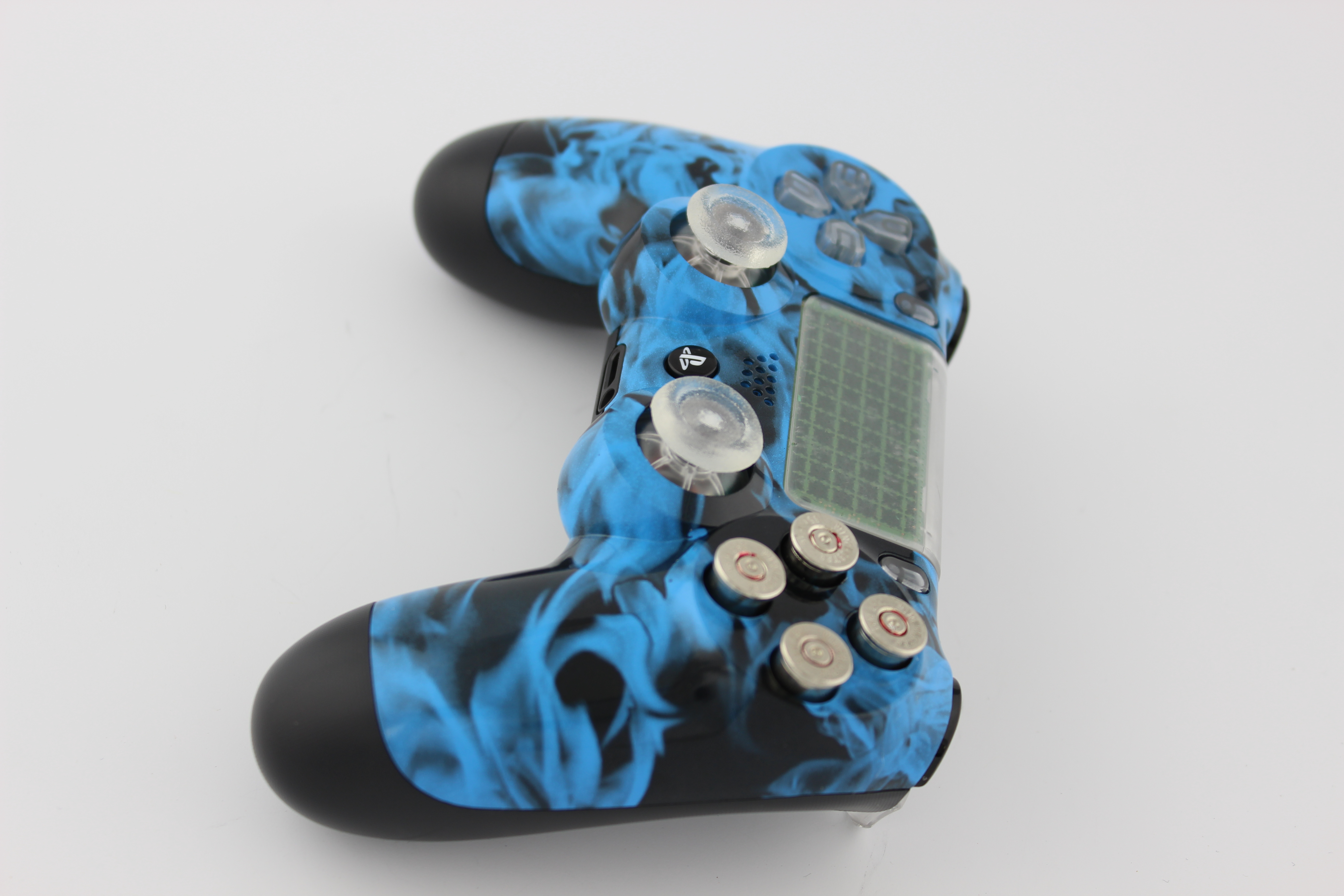 Blue Naughty Flames Lit PlayStation 4 Controller with Nickel Bullet Buttons photos and movies