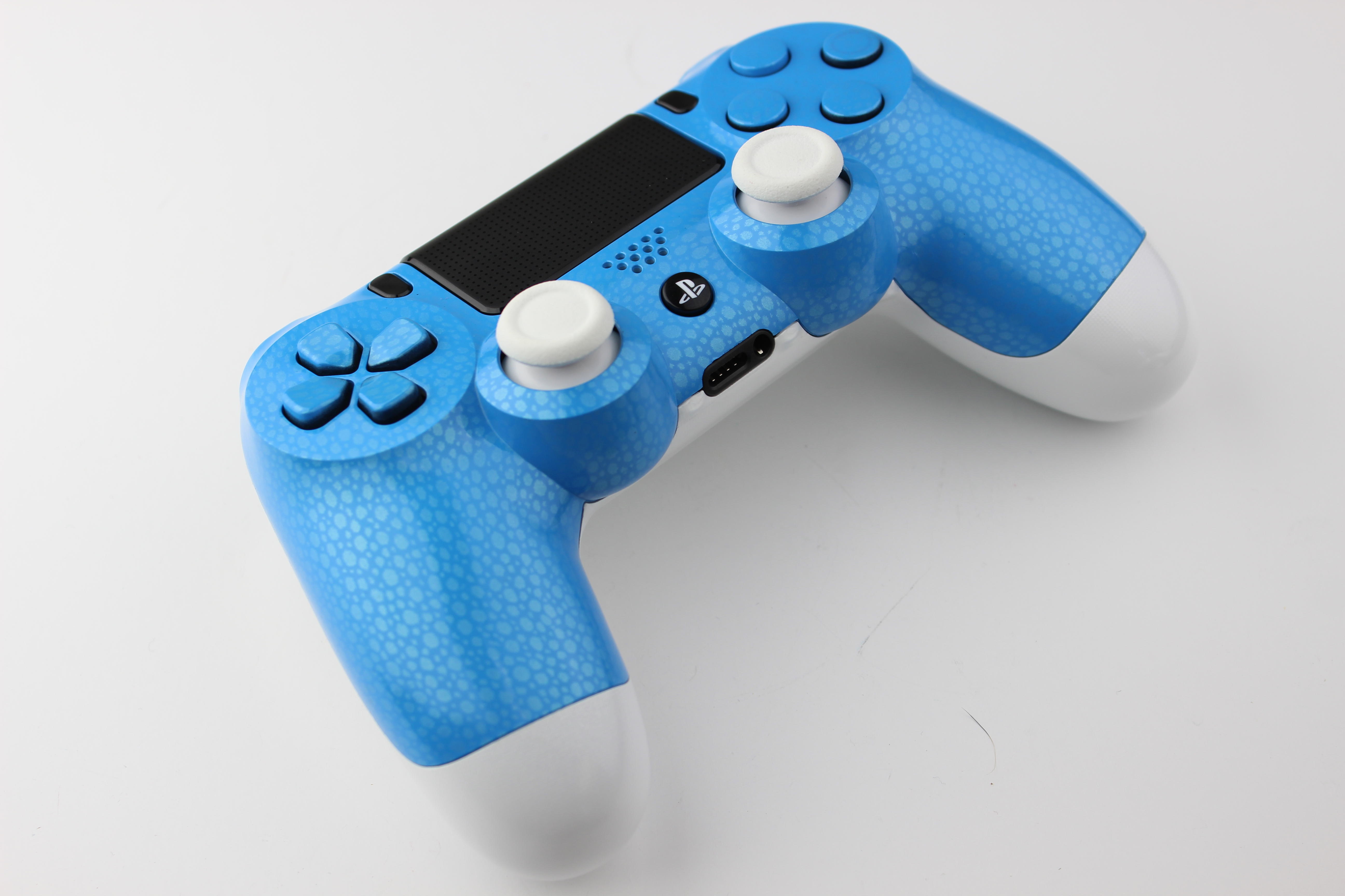 Blue Pearlecent Chameleon and White PlayStation 4 Controller 3