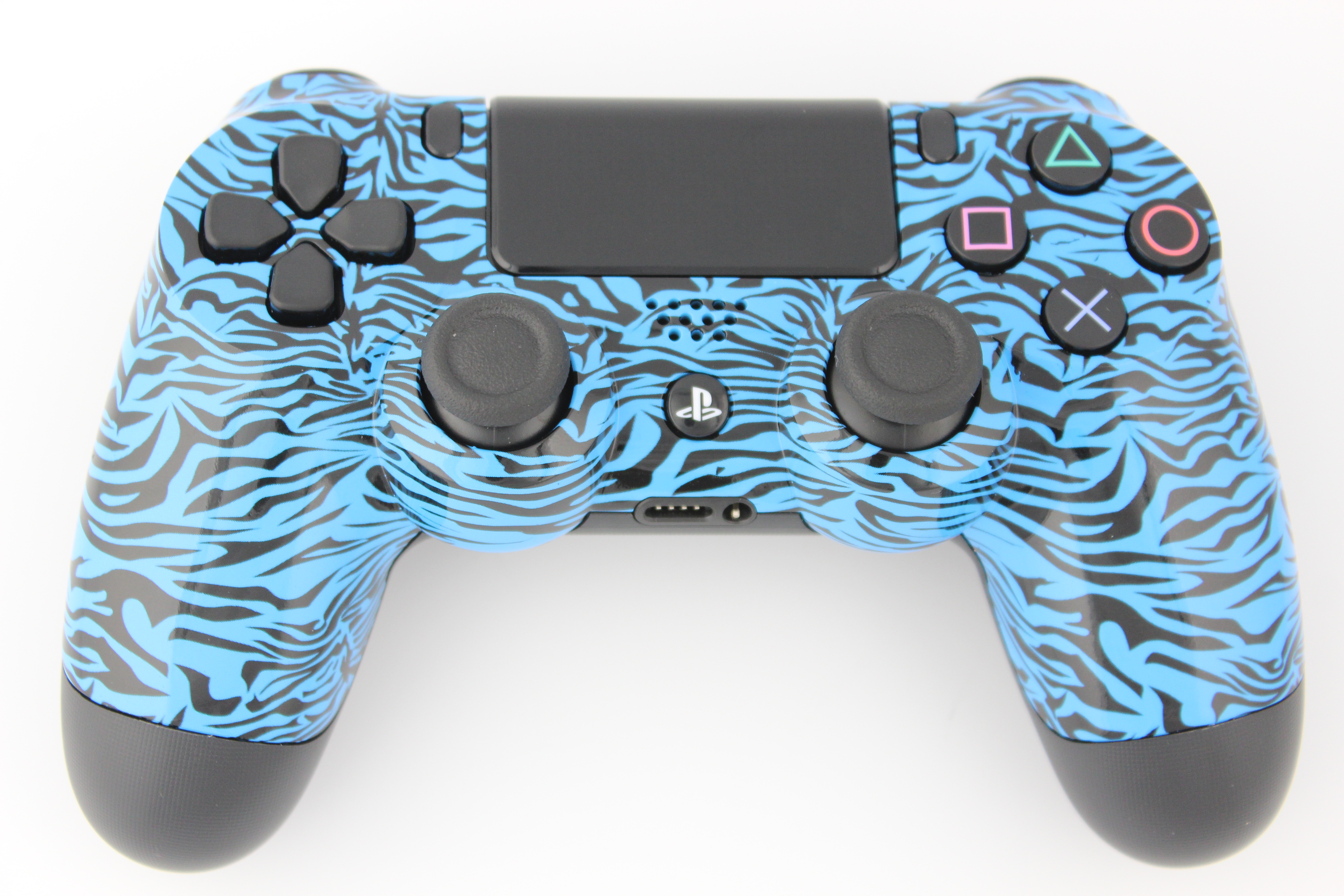 Blue Small Jagged Zebra PlayStation 4 Controller photos and movies