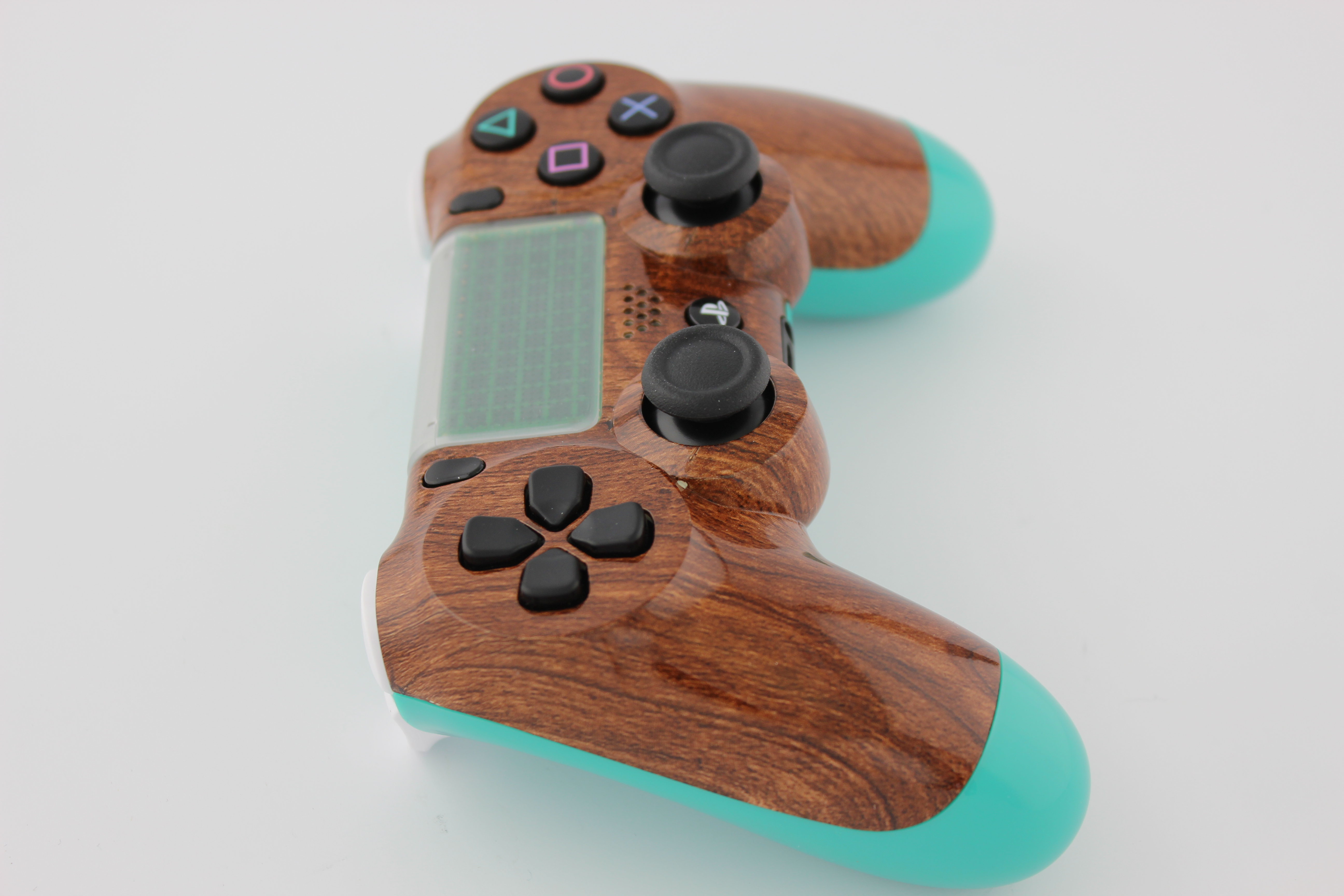 Brown Straight Grain and Teal Lit PlayStation 4 Controller 8