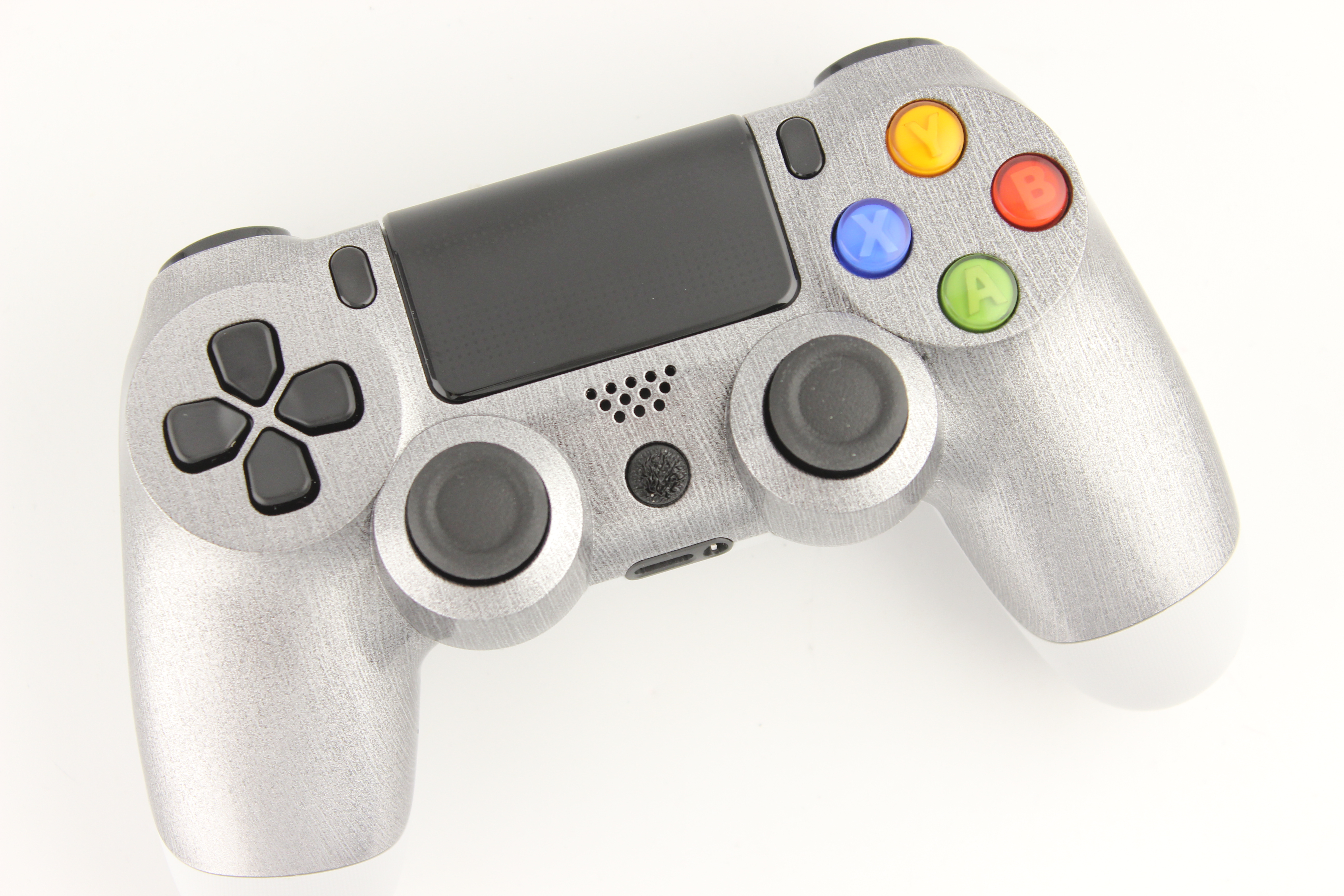 Brushed Aluminum and White PlayStation 4 Controller with XB360 Buttons photos and movies