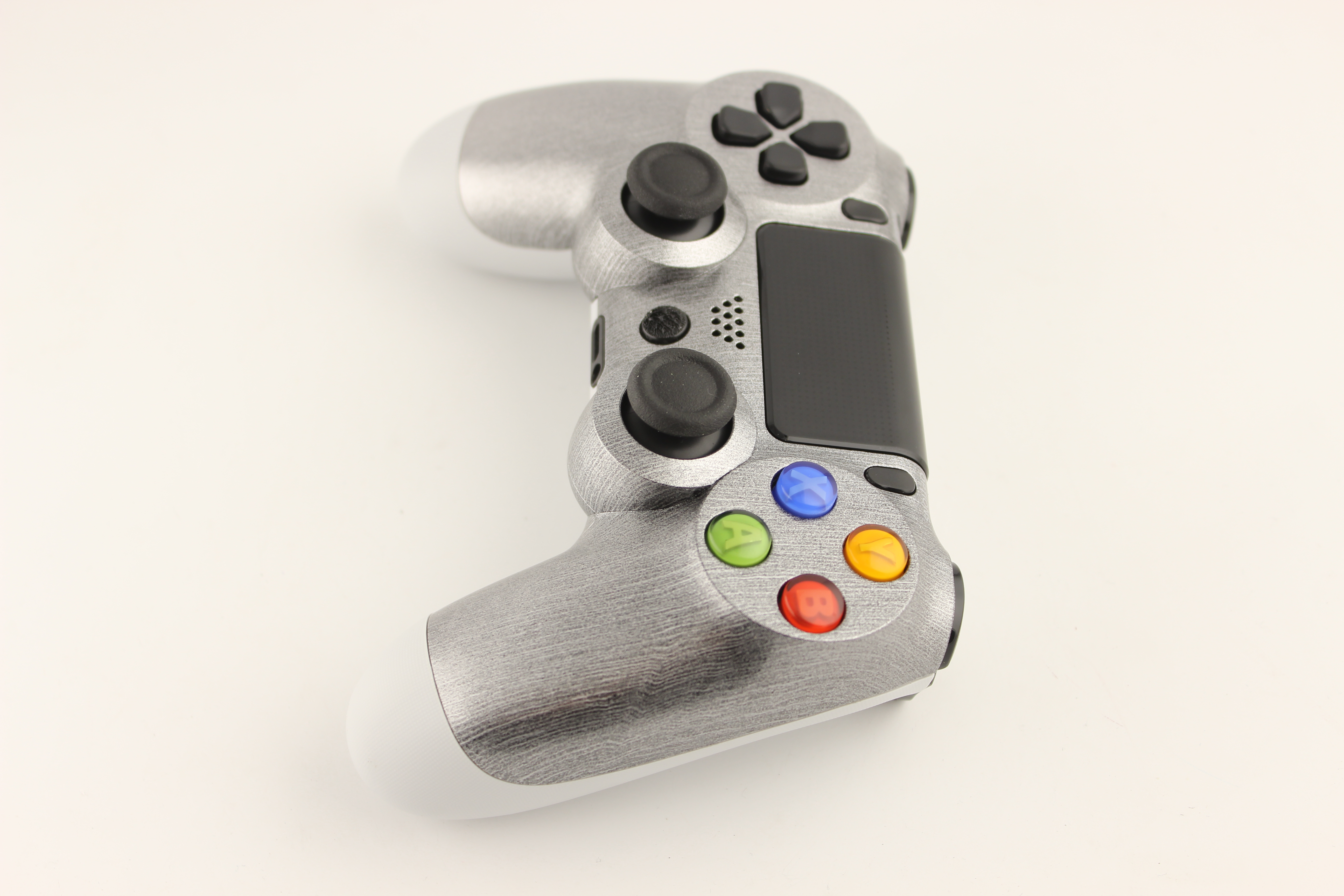 Brushed Aluminum and White PlayStation 4 Controller with XB360 Buttons photos and movies