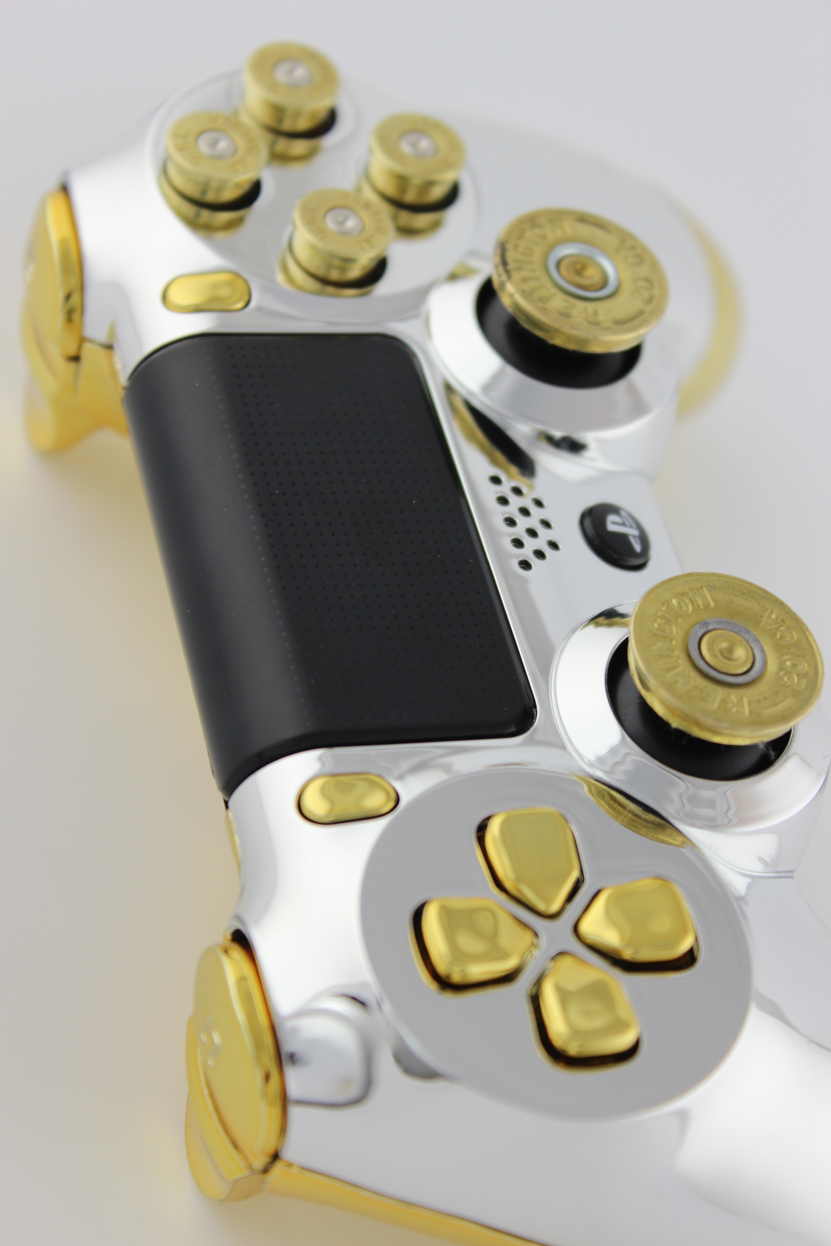 Chrome and Gold Chrome PlayStation 4 Controller with Brass Bullet Buttons 3