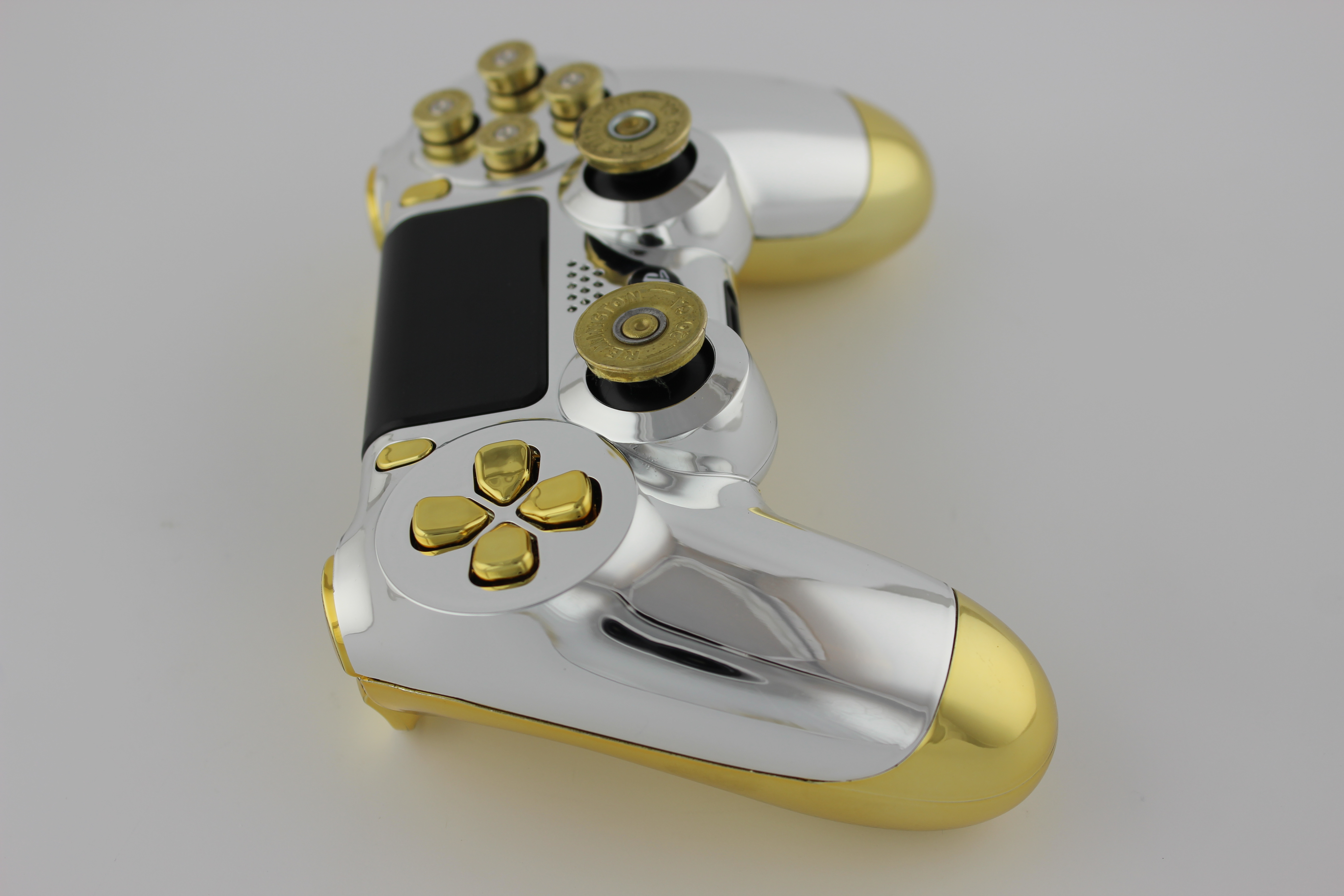 Chrome and Gold Chrome PlayStation 4 Controller with Brass Bullet Buttons 6