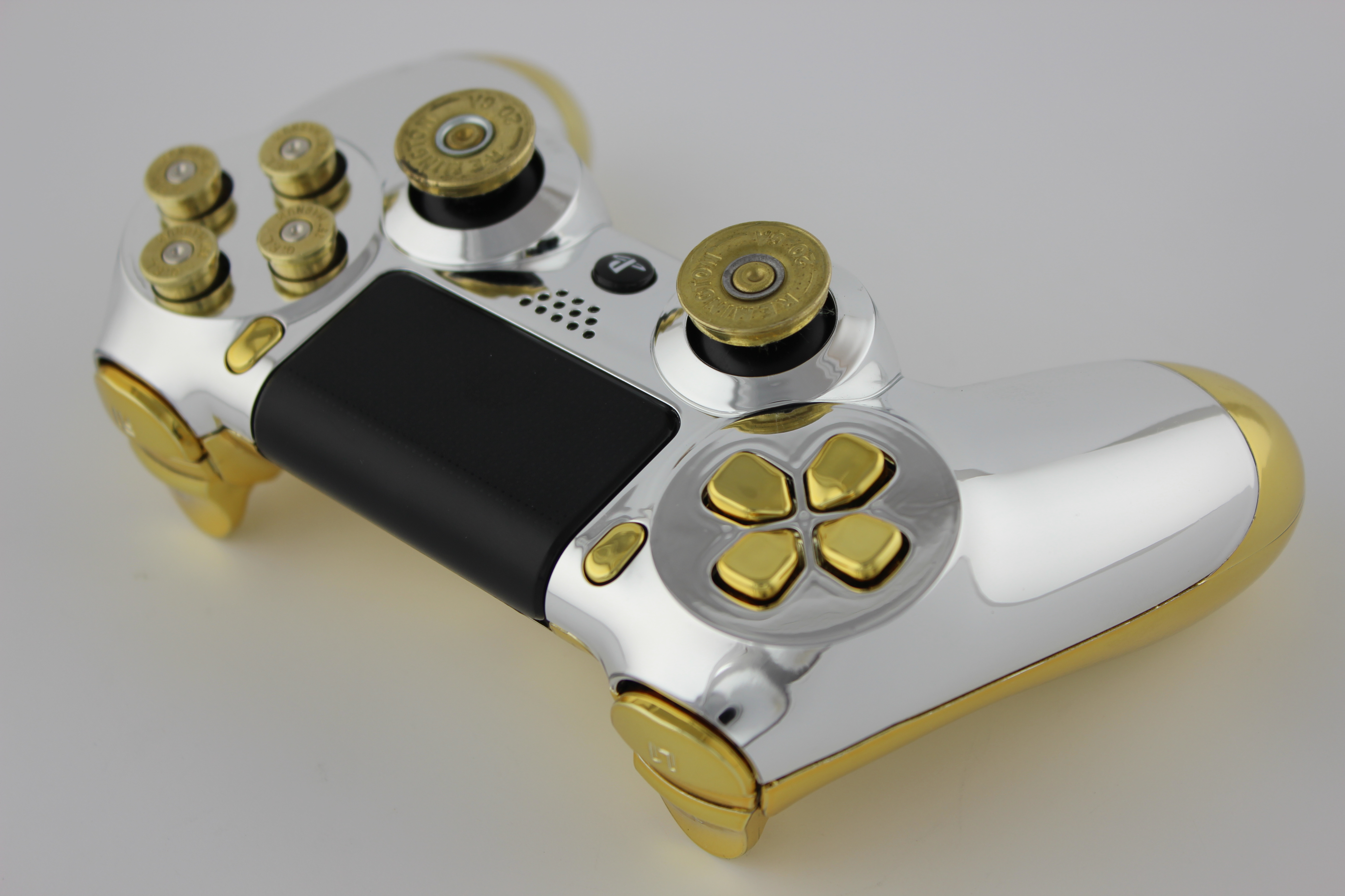 Chrome and Gold Chrome PlayStation 4 Controller with Brass Bullet Buttons 7
