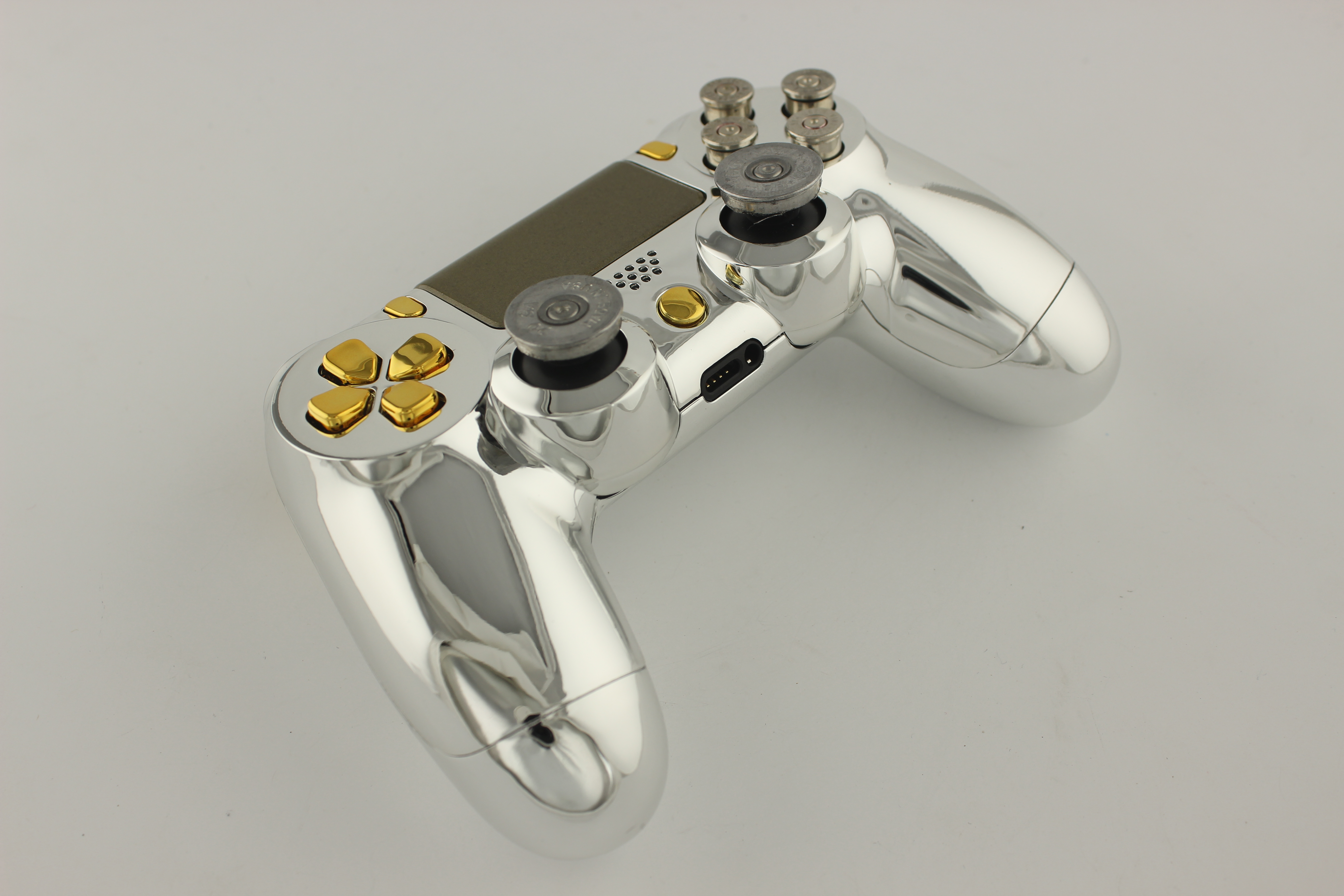 Chrome and Gold Chrome PlayStation 4 Controller with Nickel Bullet Buttons 1