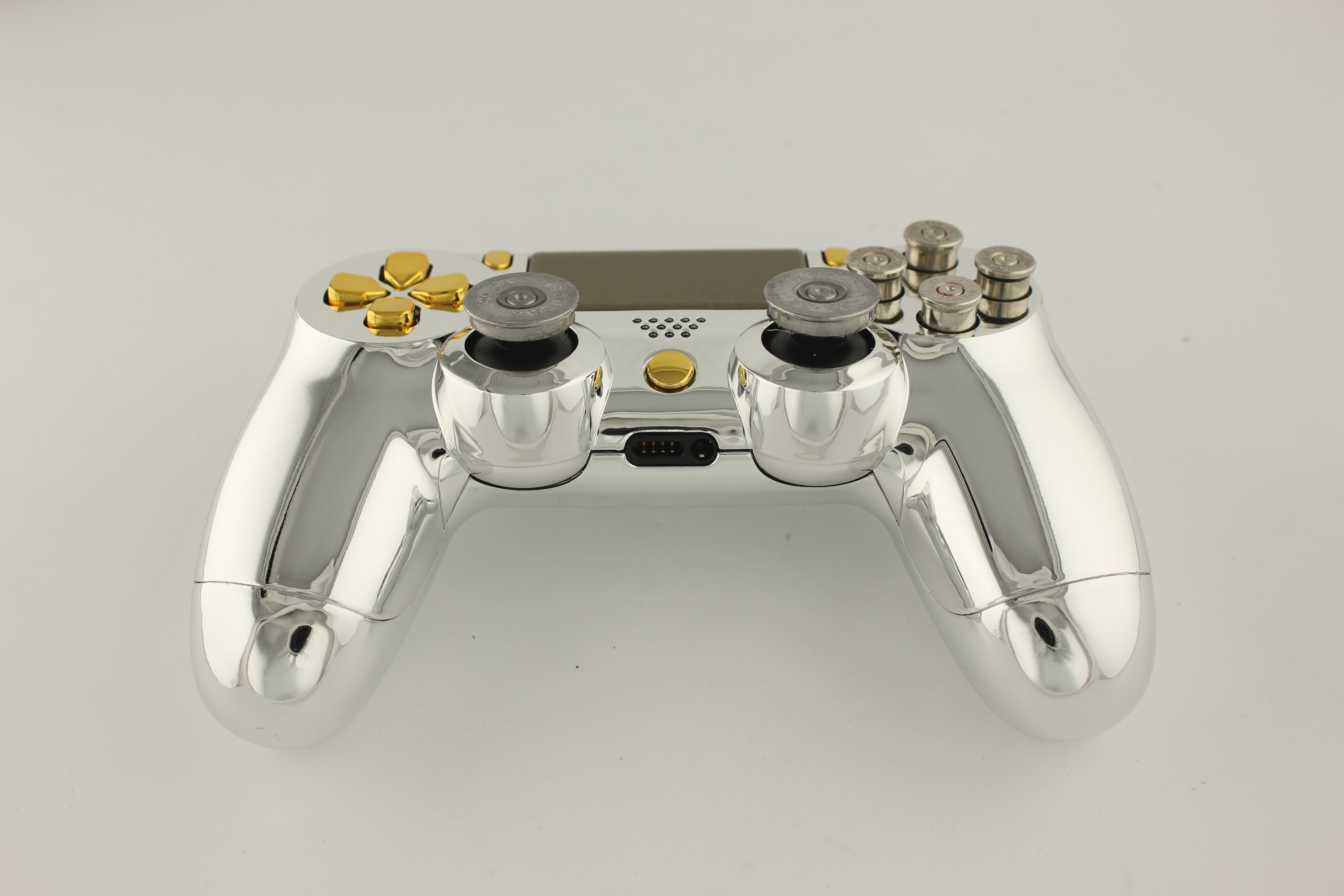 Chrome and Gold Chrome PlayStation 4 Controller with Nickel Bullet Buttons 8