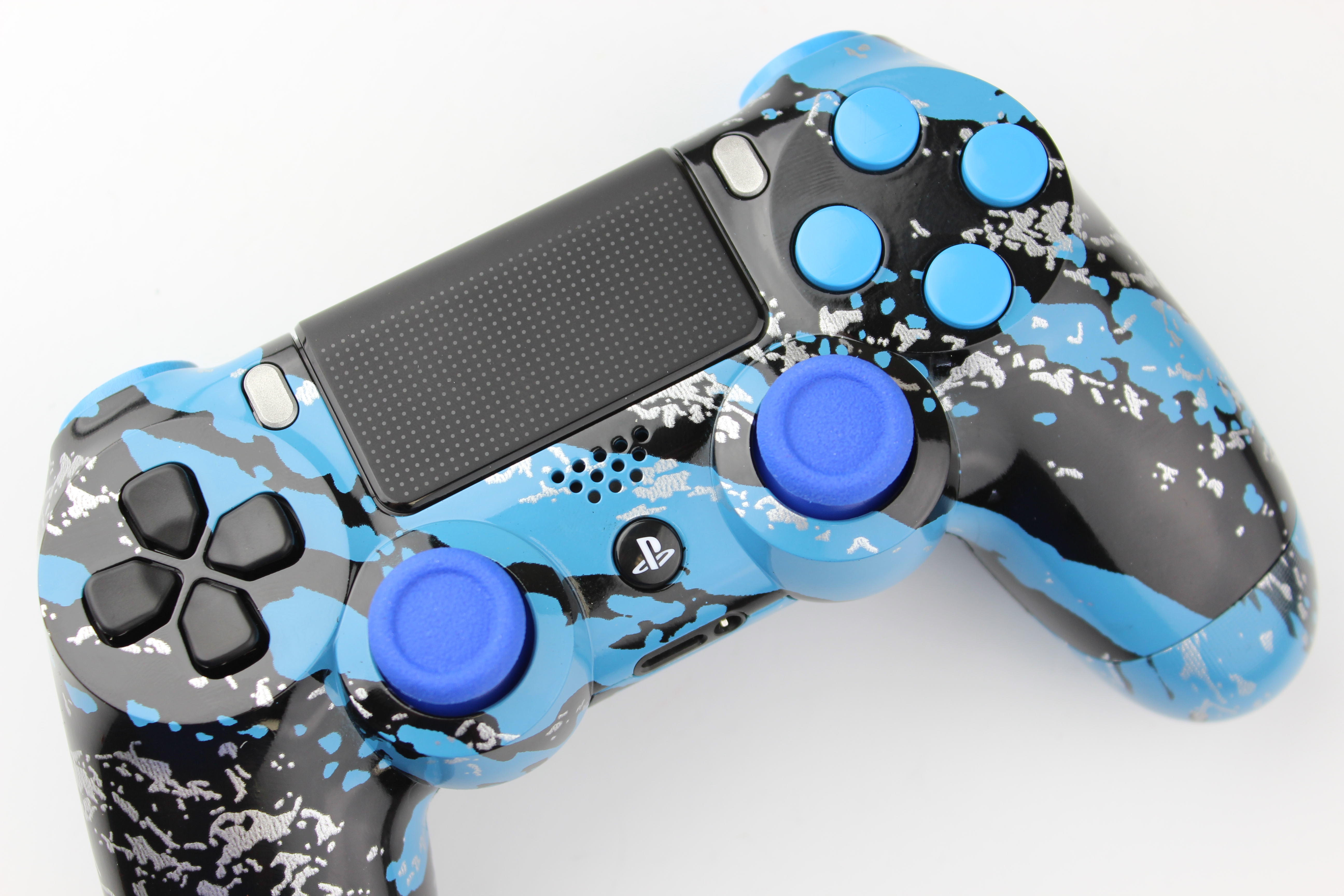 Custom Blue Savage Camo and Blue PlayStation 4 Controller photos and movies