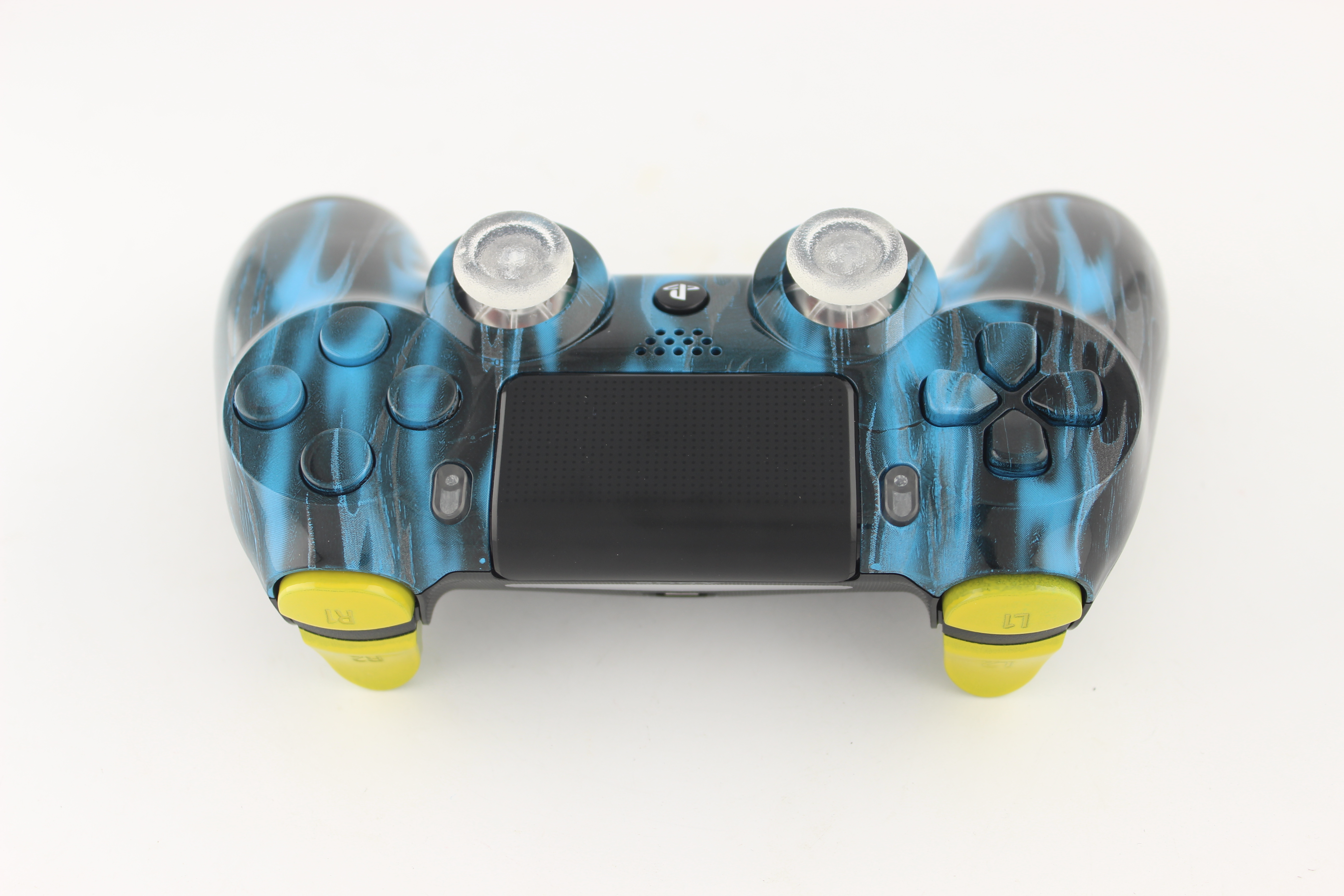 Custom Blue and Black Flames PlayStation 4 Controller photos and movies