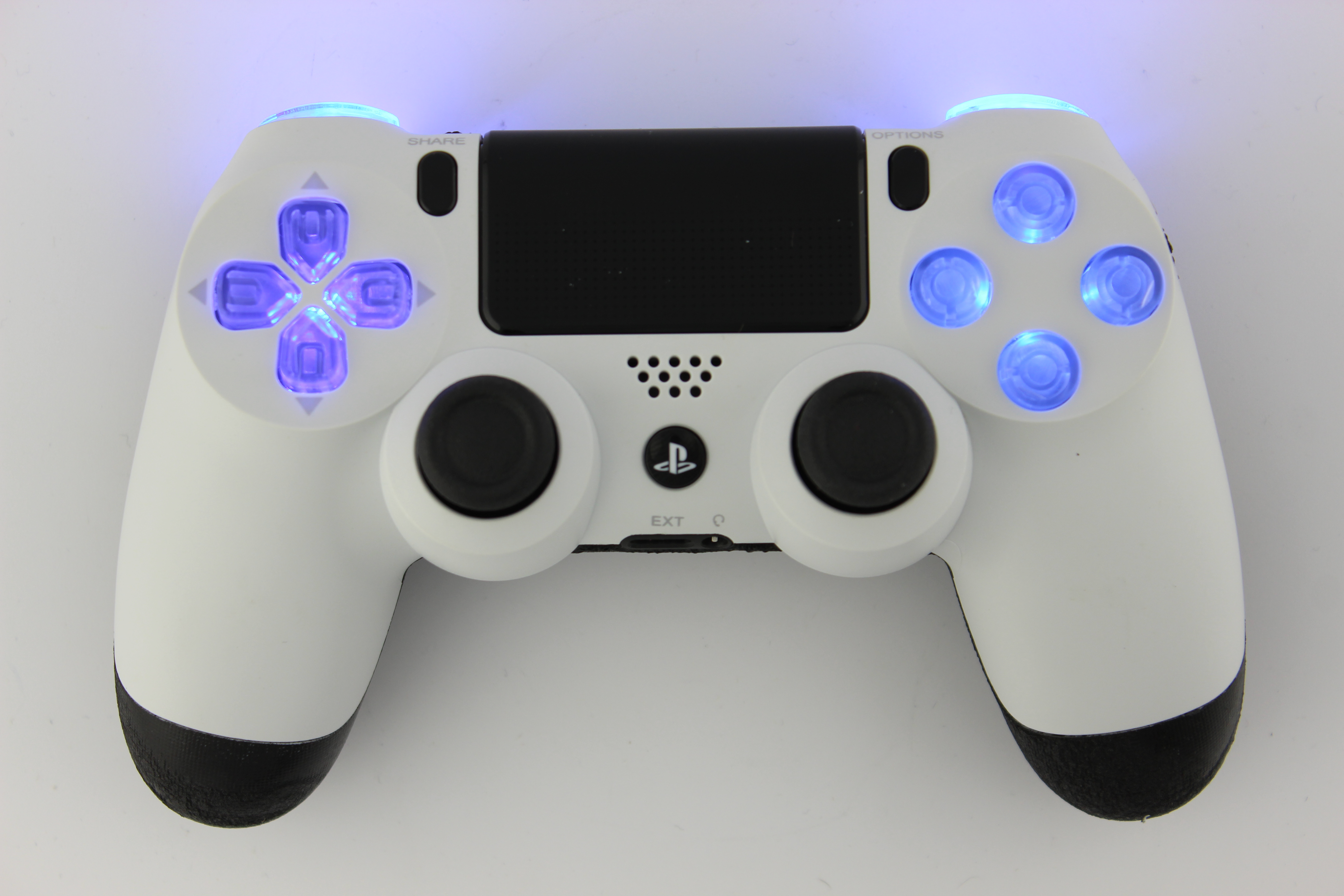 Glacier White PlayStation 4 Controller with Lit Blue Buttons photos and movies