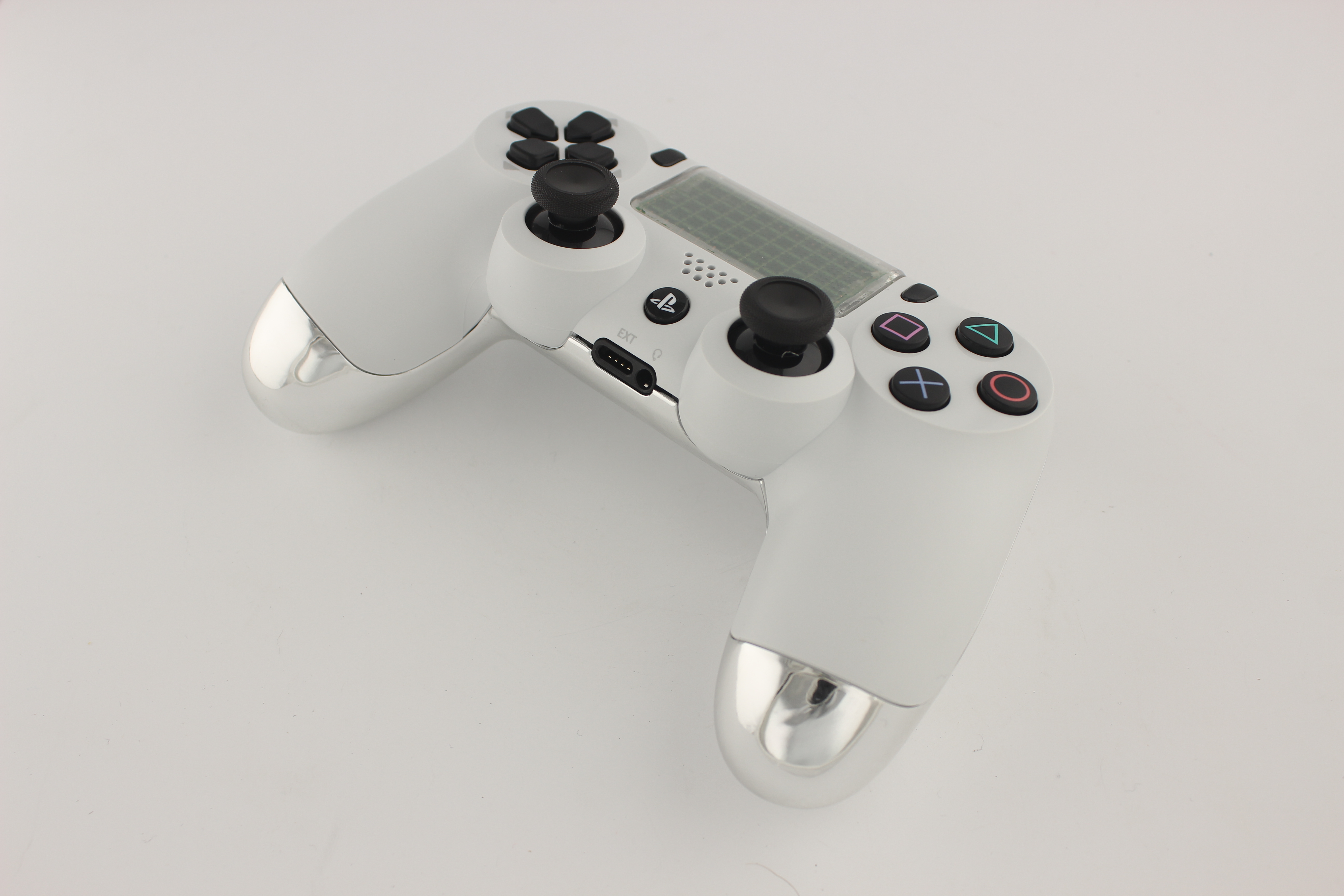 Glacier White and Chrome Lit PlayStation 4 Contoller photos and movies