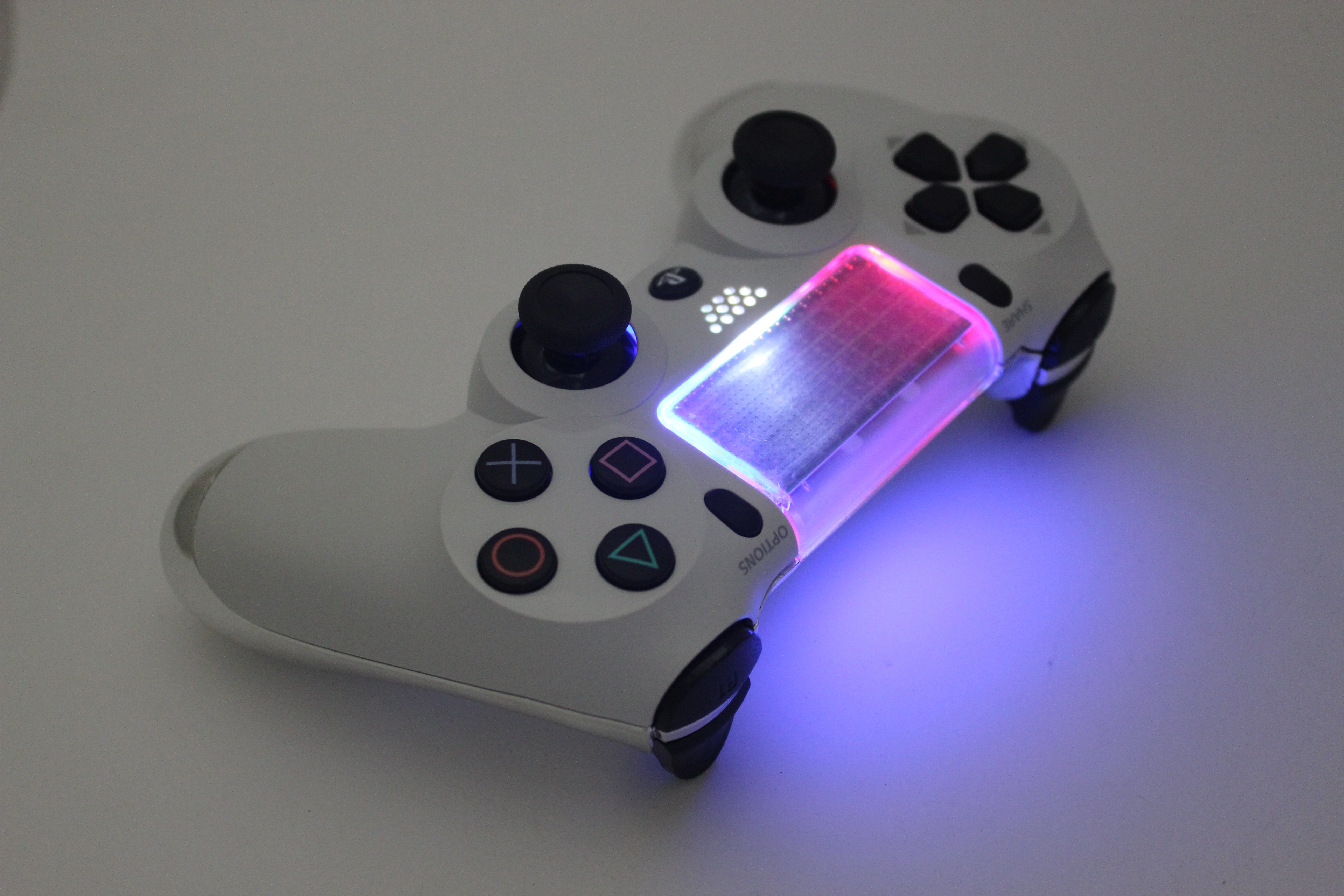 Glacier White and Chrome Lit PlayStation 4 Contoller photos and movies