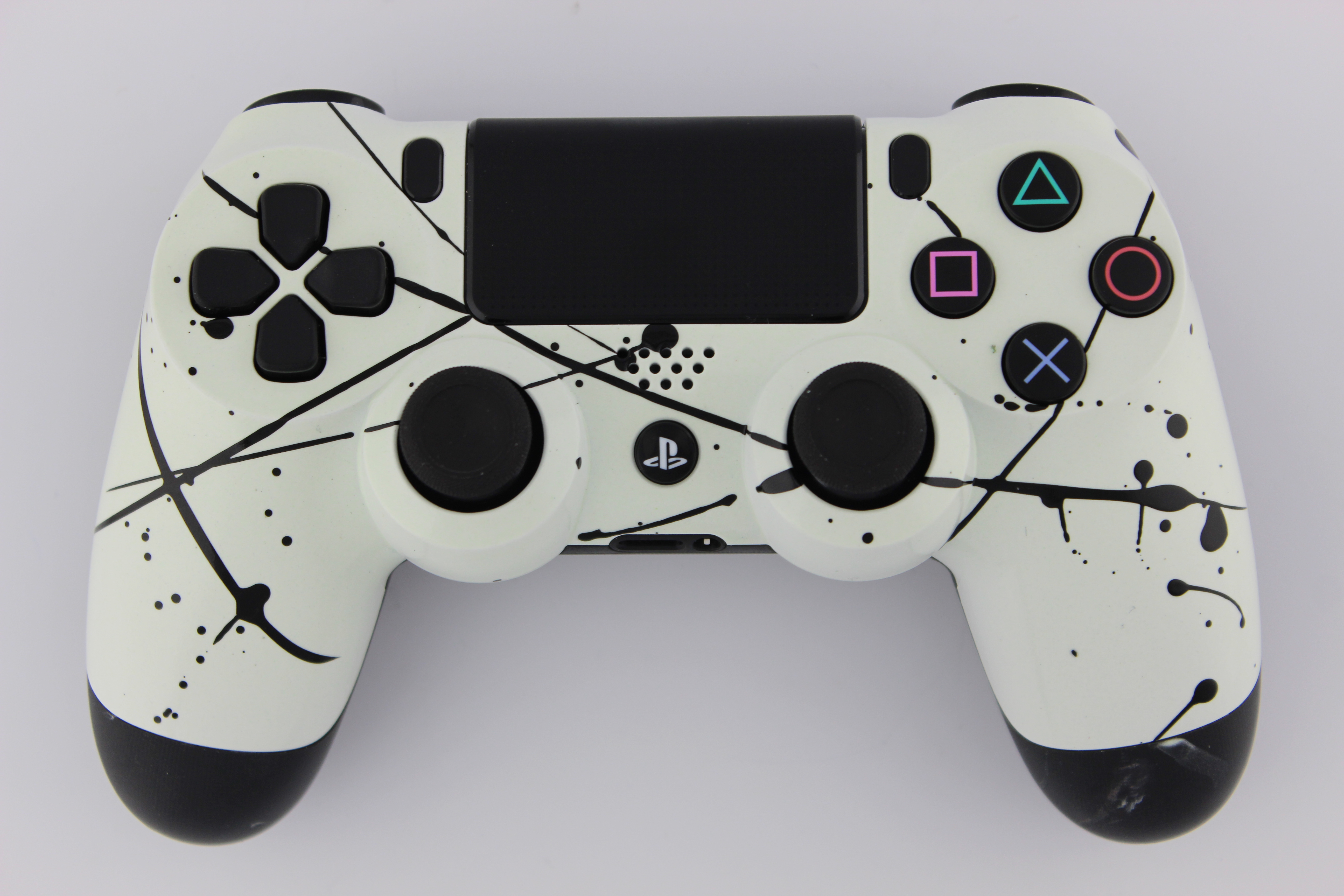 Glow in the Dark PlayStation 4 Controller with Black Splatter photos and movies