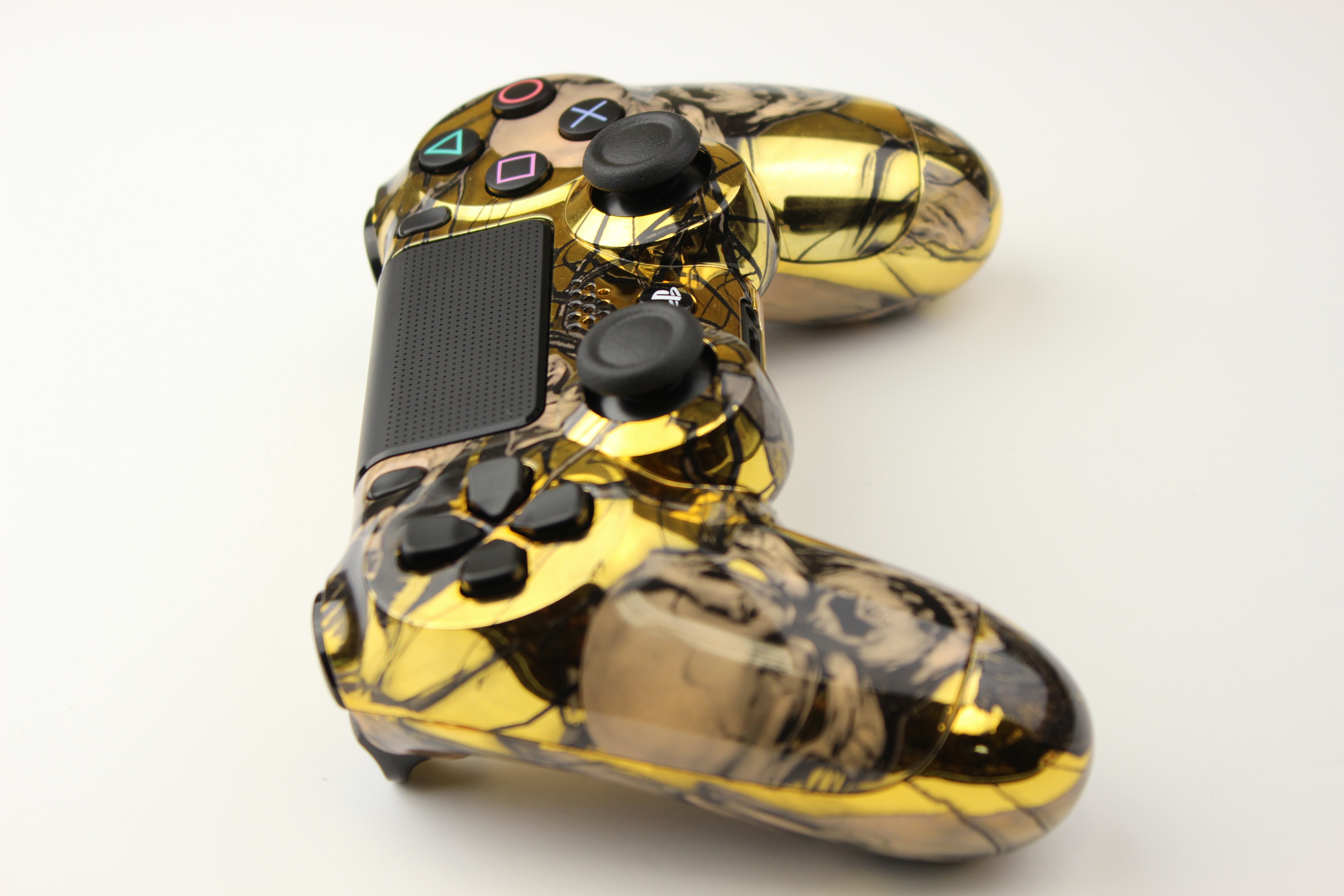 Gold Chrome Mr Creepy PlayStation 4 Controller photos and movies