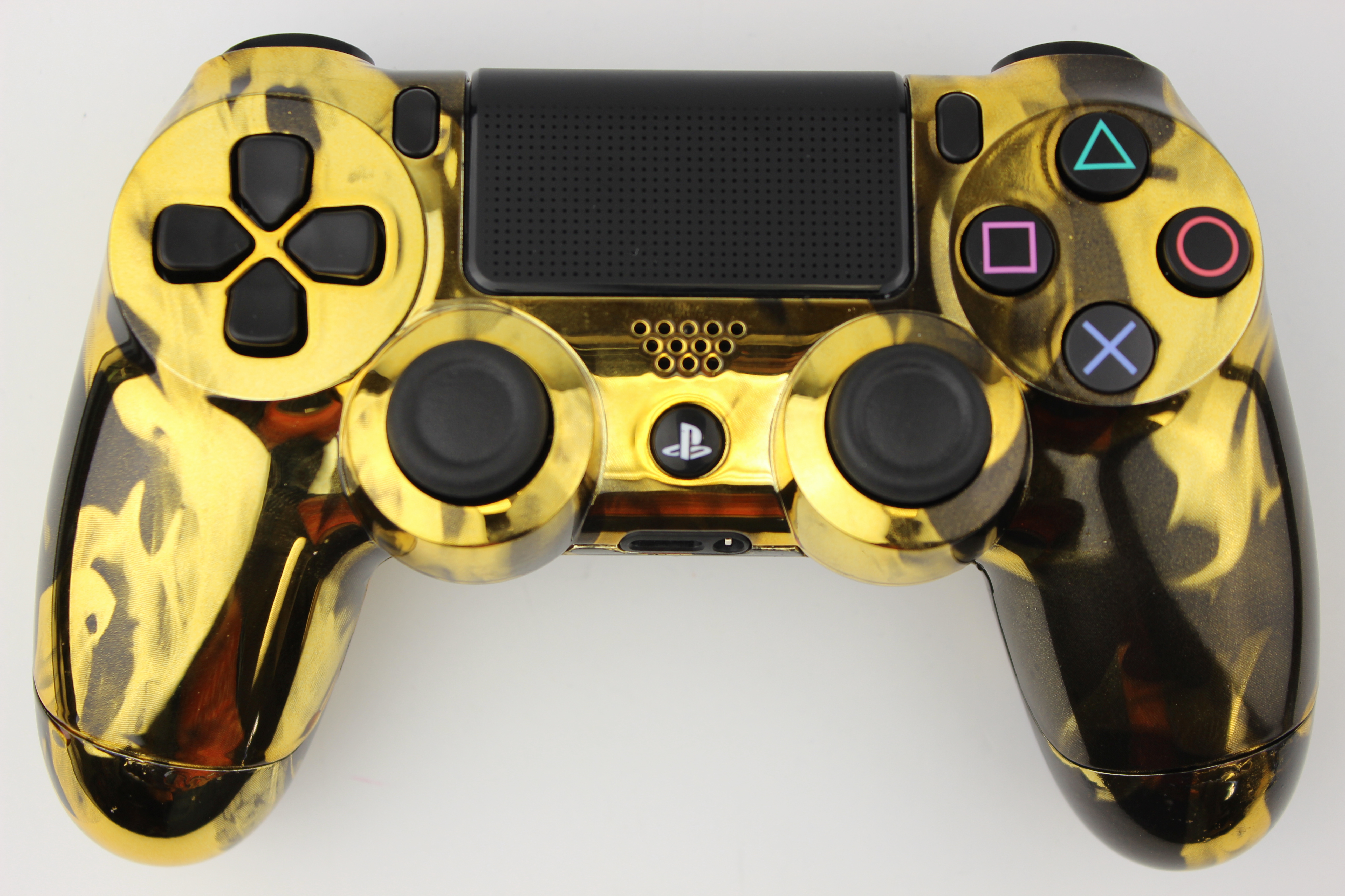 Gold Chrome Naughty Fire PlayStation 4 Controller photos and movies