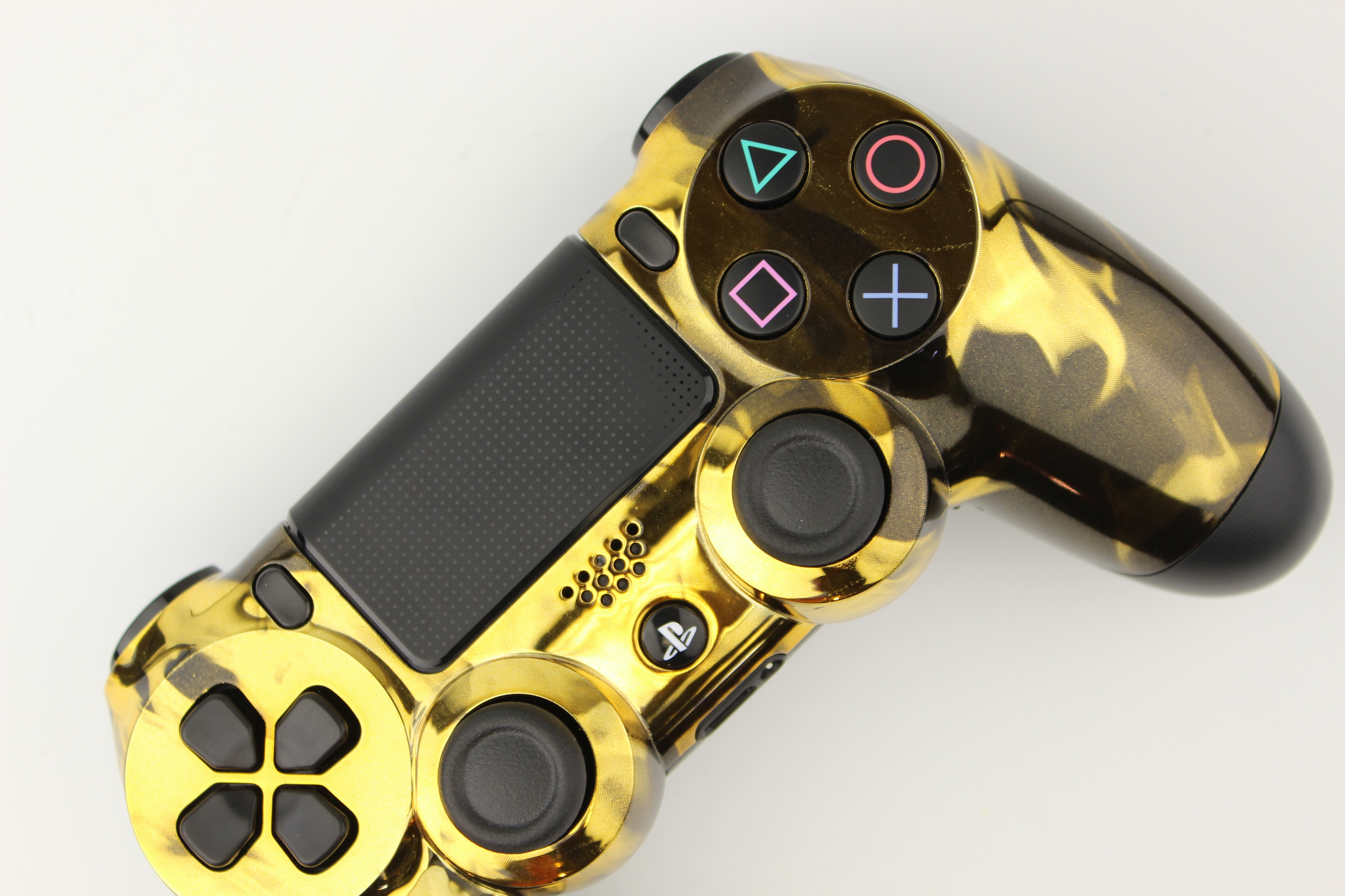 Gold Chrome Naughty Fire PlayStation 4 Controller photos and movies