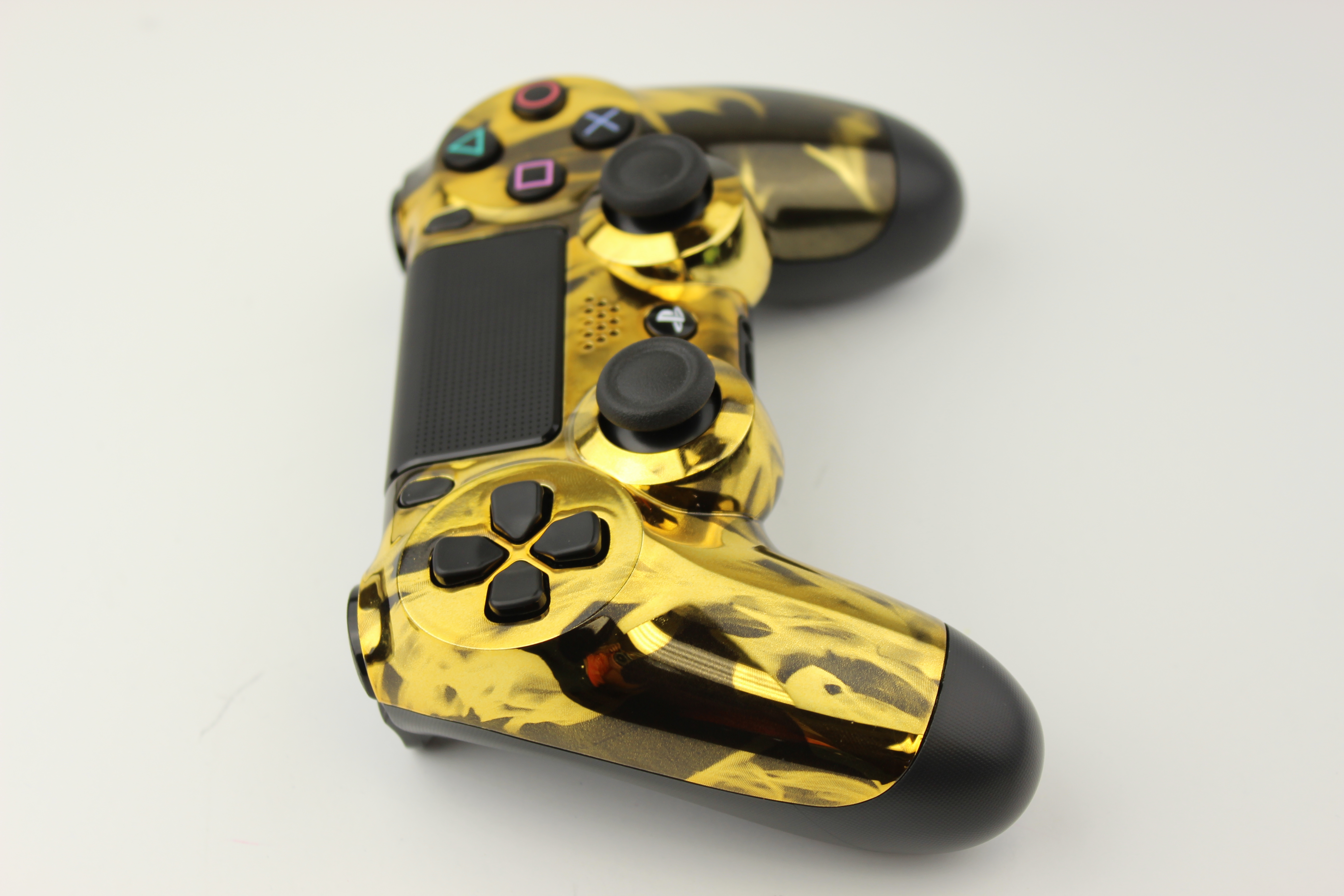 Gold Chrome Naughty Fire PlayStation 4 Controller photos and movies