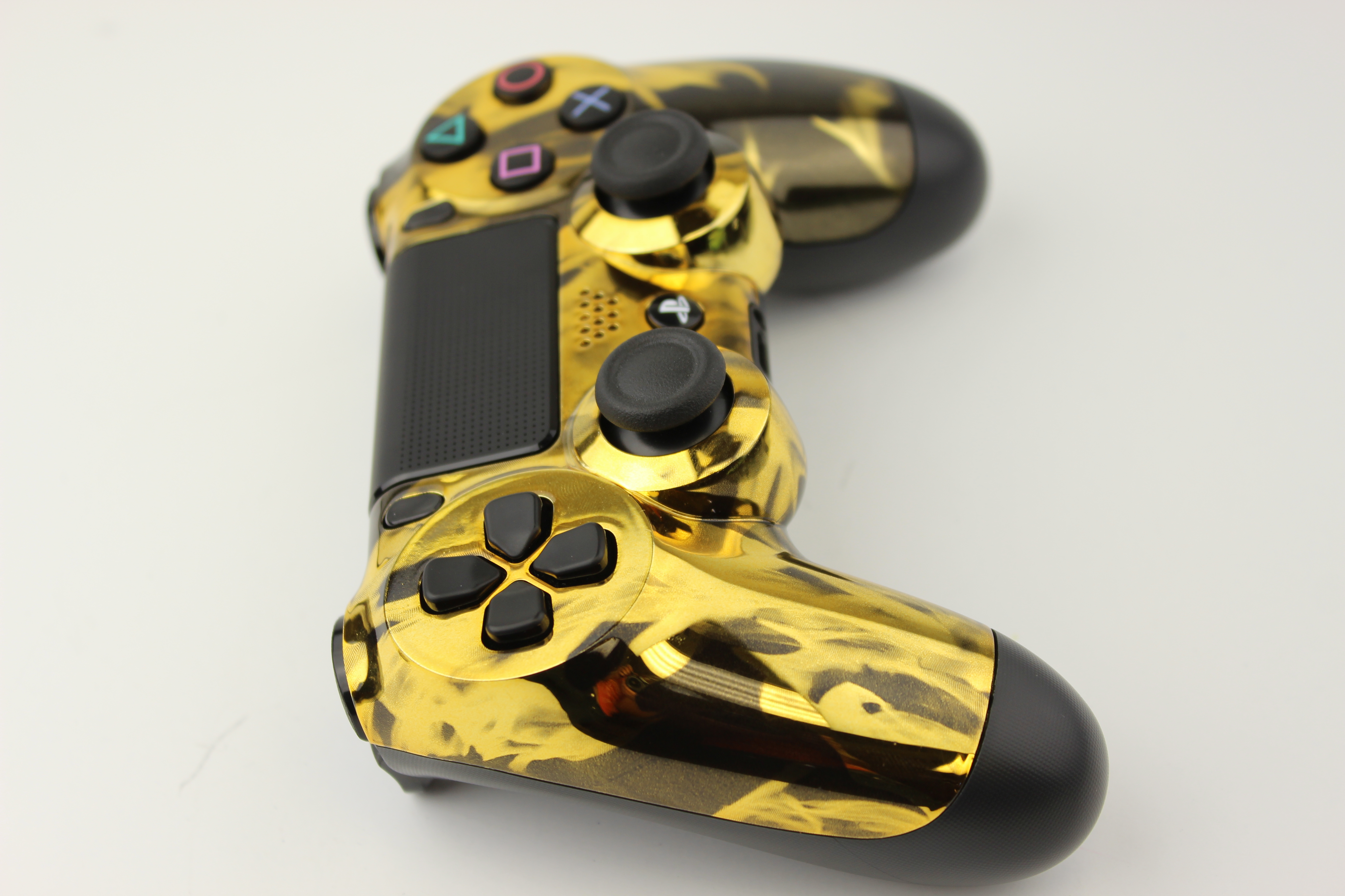 Gold Chrome Naughty Fire PlayStation 4 Controller photos and movies