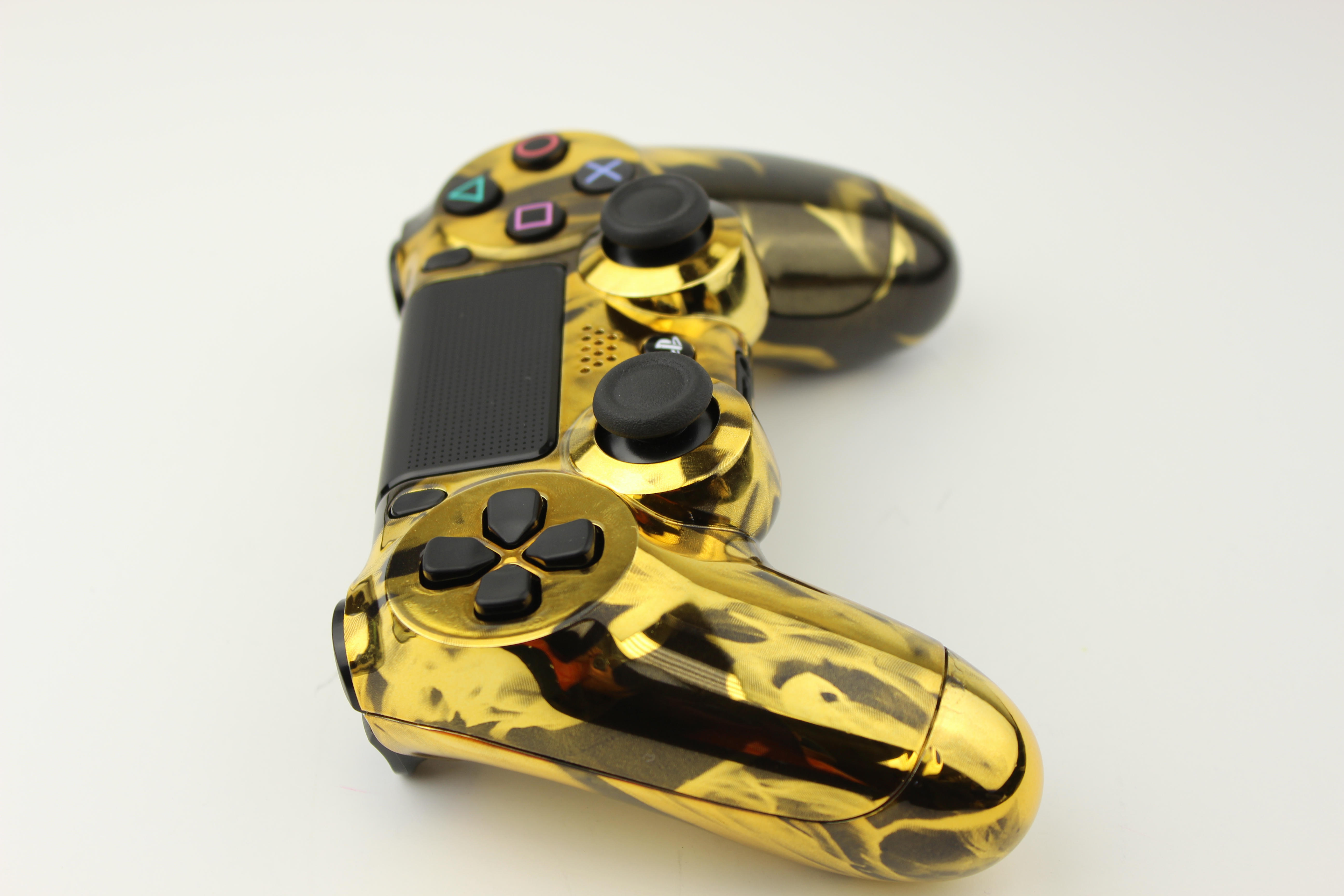 Gold Chrome Naughty Fire PlayStation 4 Controller photos and movies