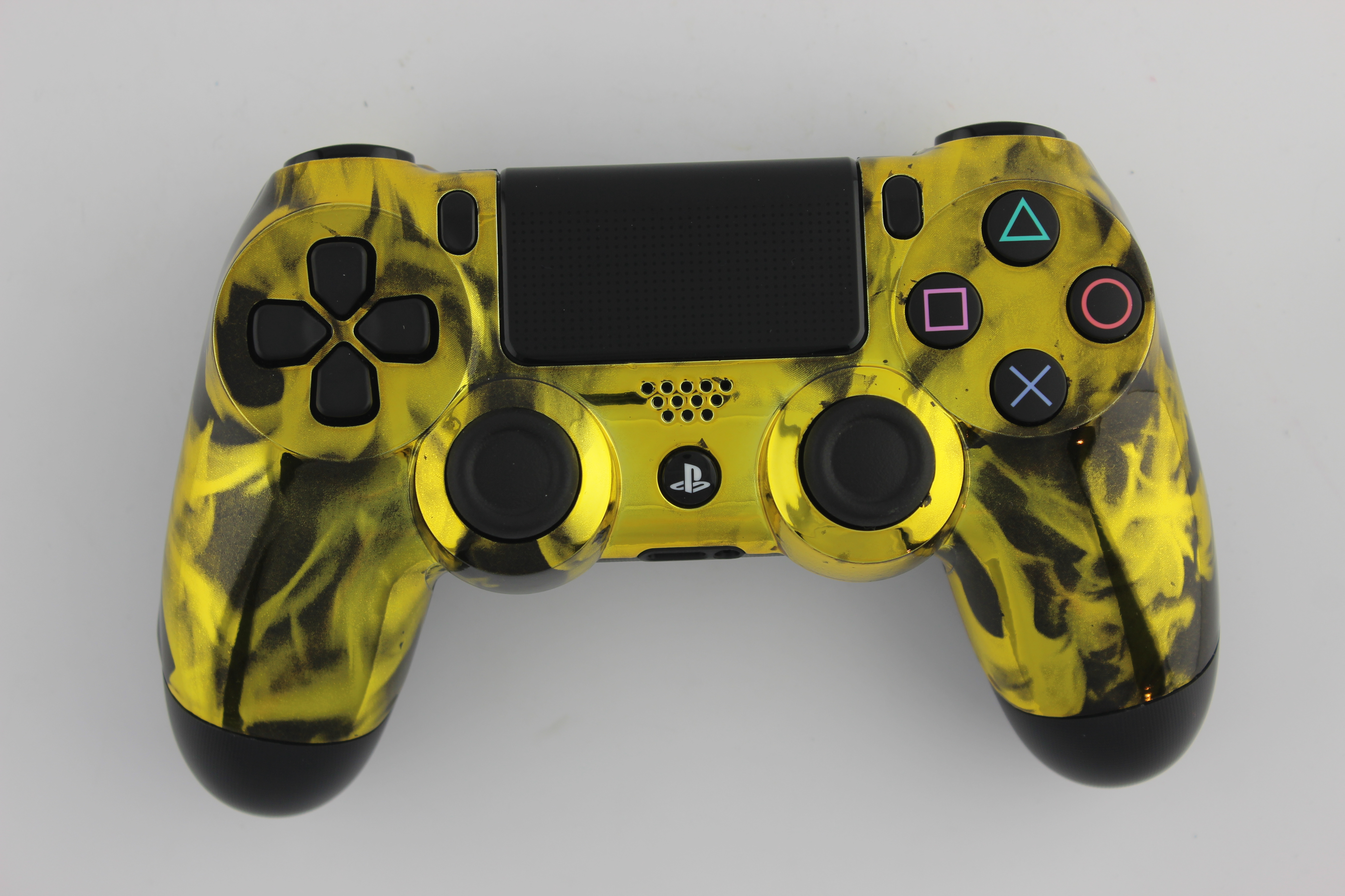 Gold Chrome Naughty Flames PlayStation 4 Controller photos and movies