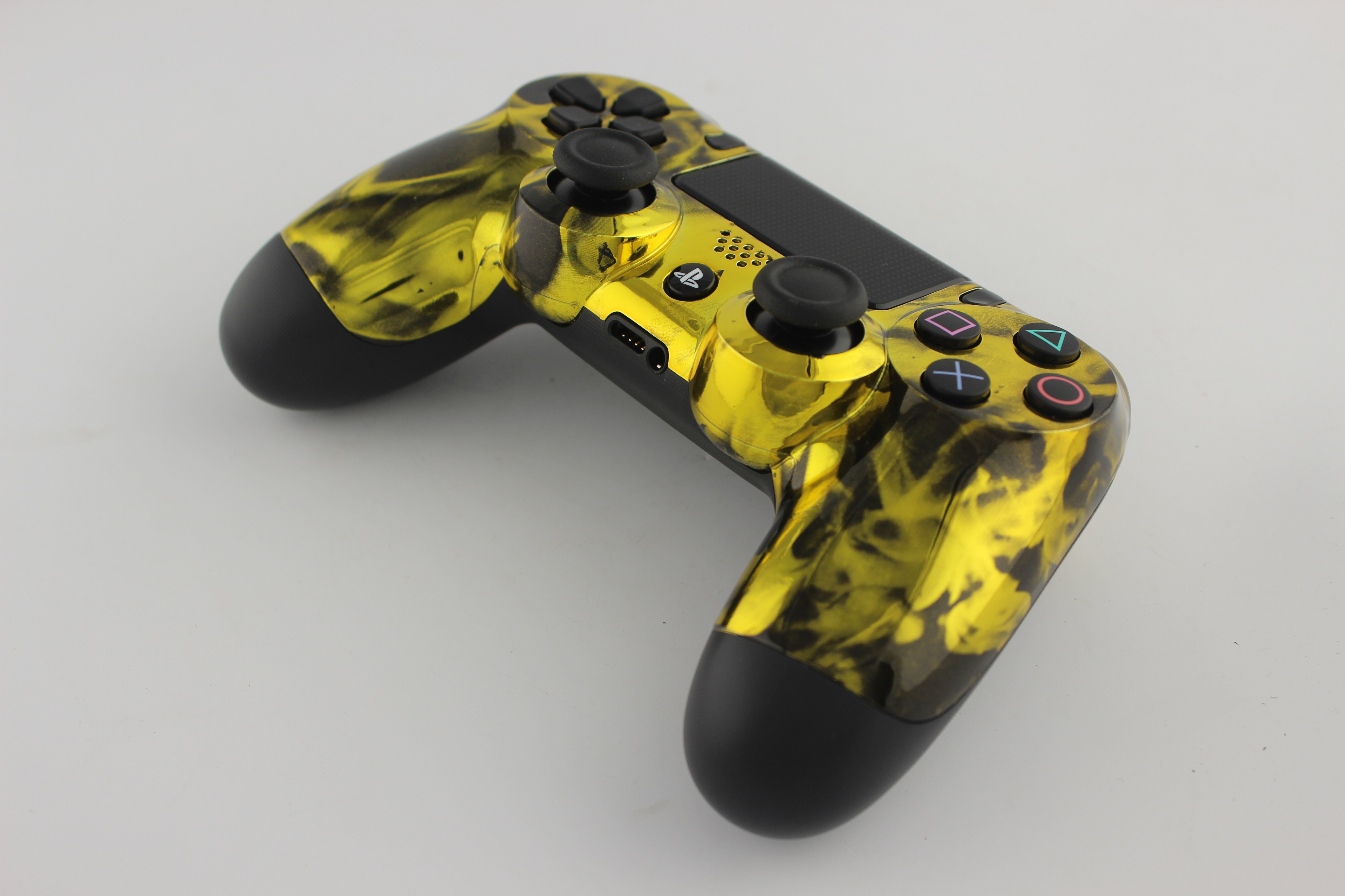 Gold Chrome Naughty Flames PlayStation 4 Controller photos and movies
