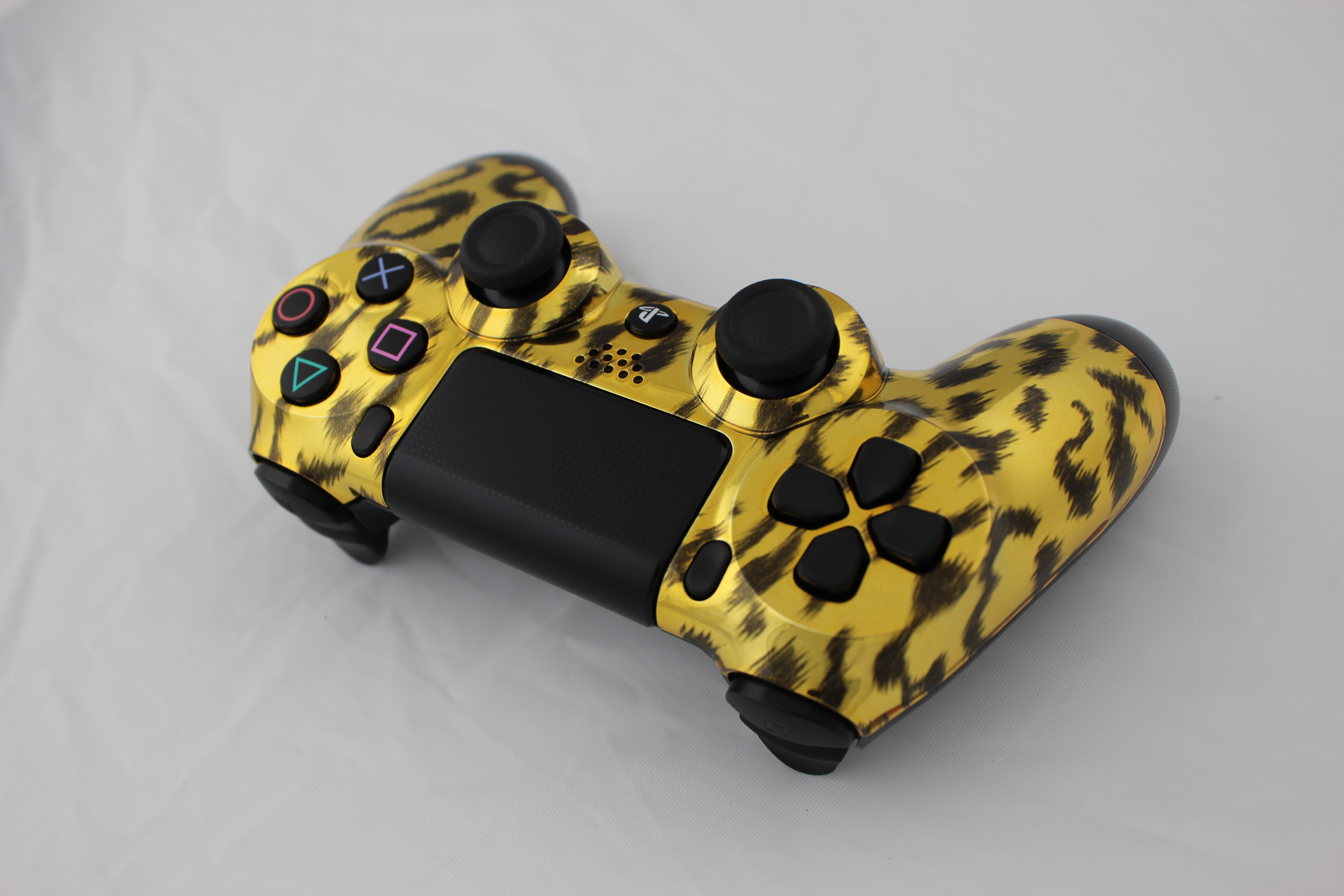 Gold Chrome Naughty Leopard PlayStation 4 Controller photos and movies