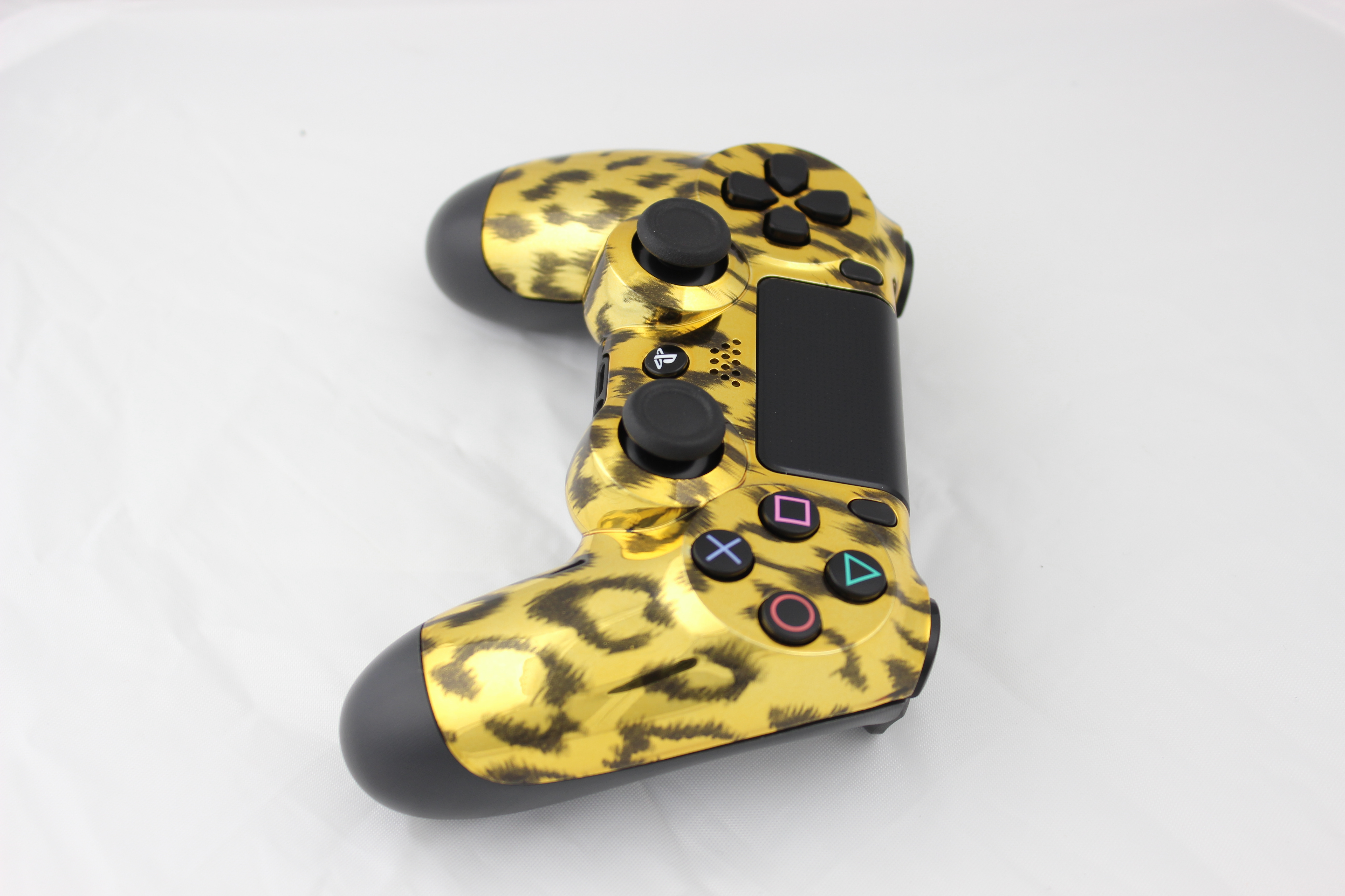 Gold Chrome Naughty Leopard PlayStation 4 Controller photos and movies