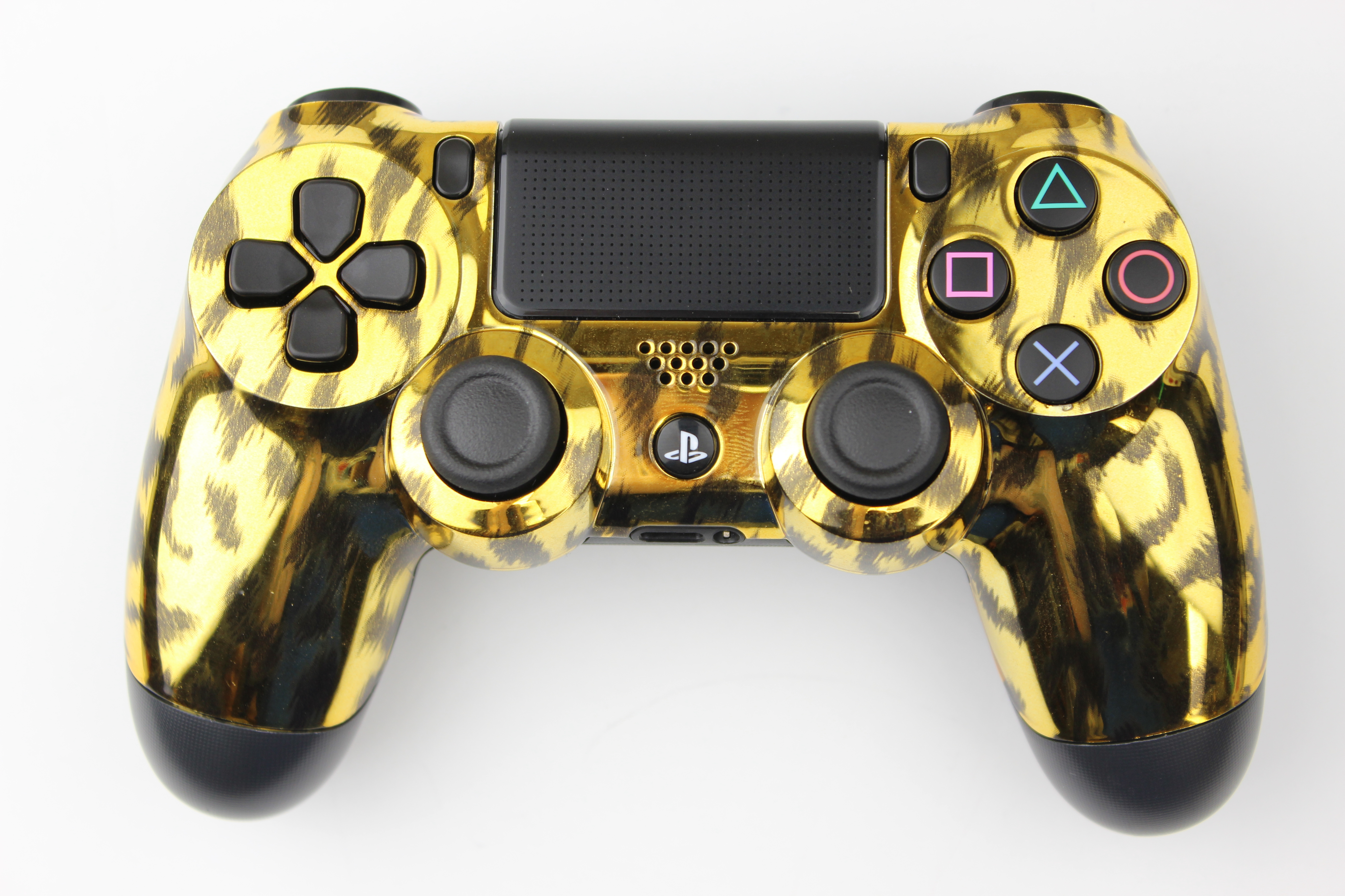 Gold Chrome Naughty Leopard PlayStation 4 Controller photos and movies