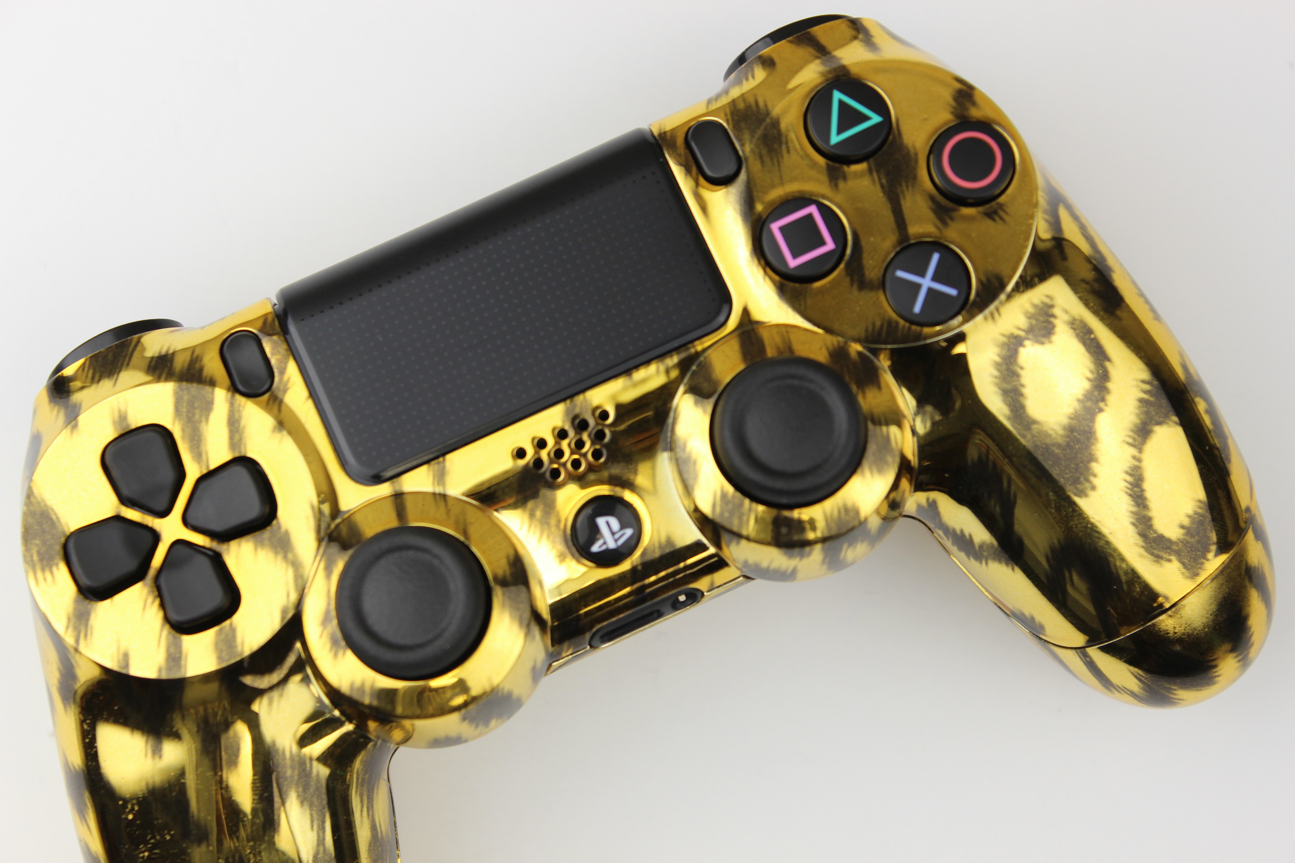 Gold Chrome Naughty Leopard PlayStation 4 Controller photos and movies