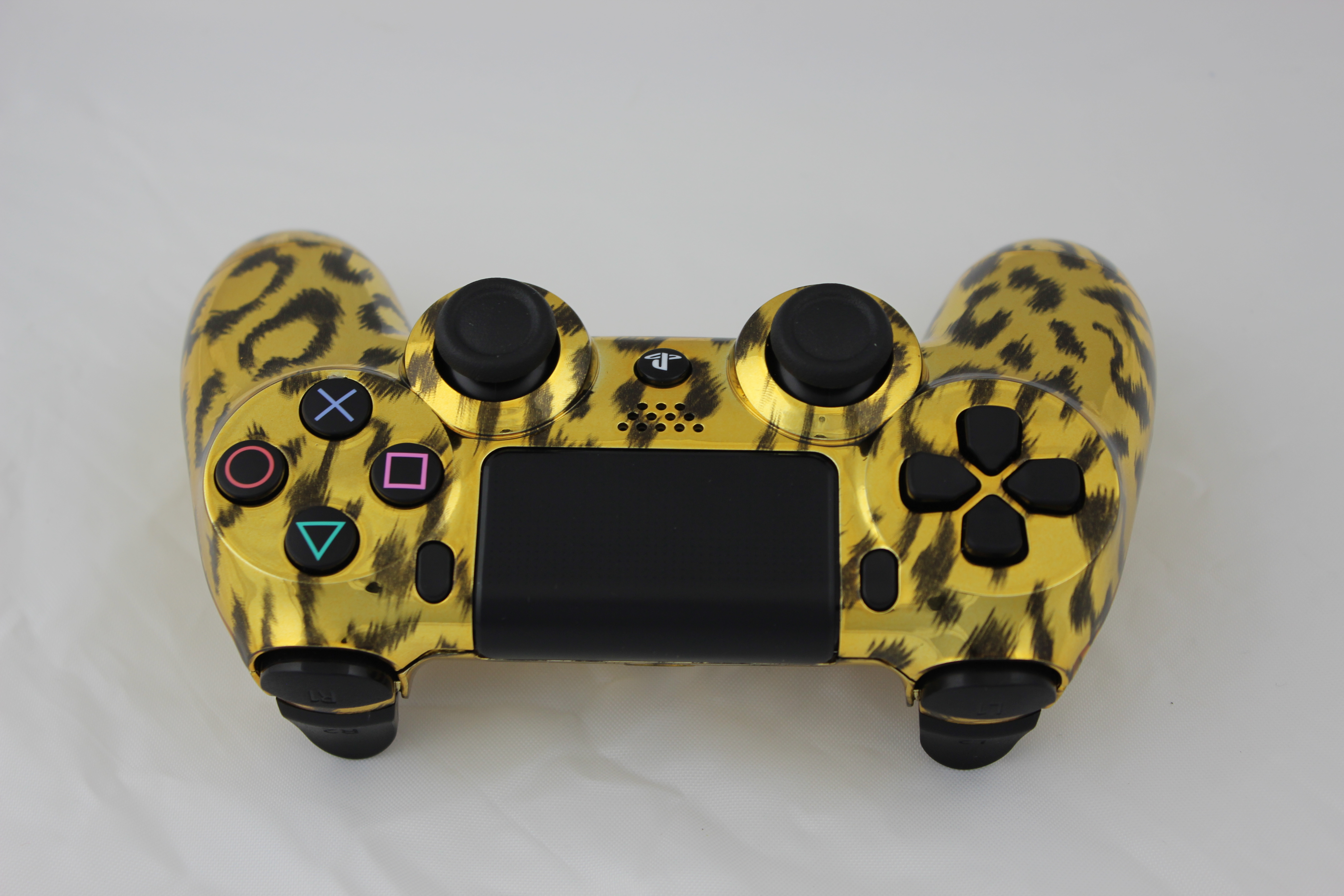 Gold Chrome Naughty Leopard PlayStation 4 Controller photos and movies