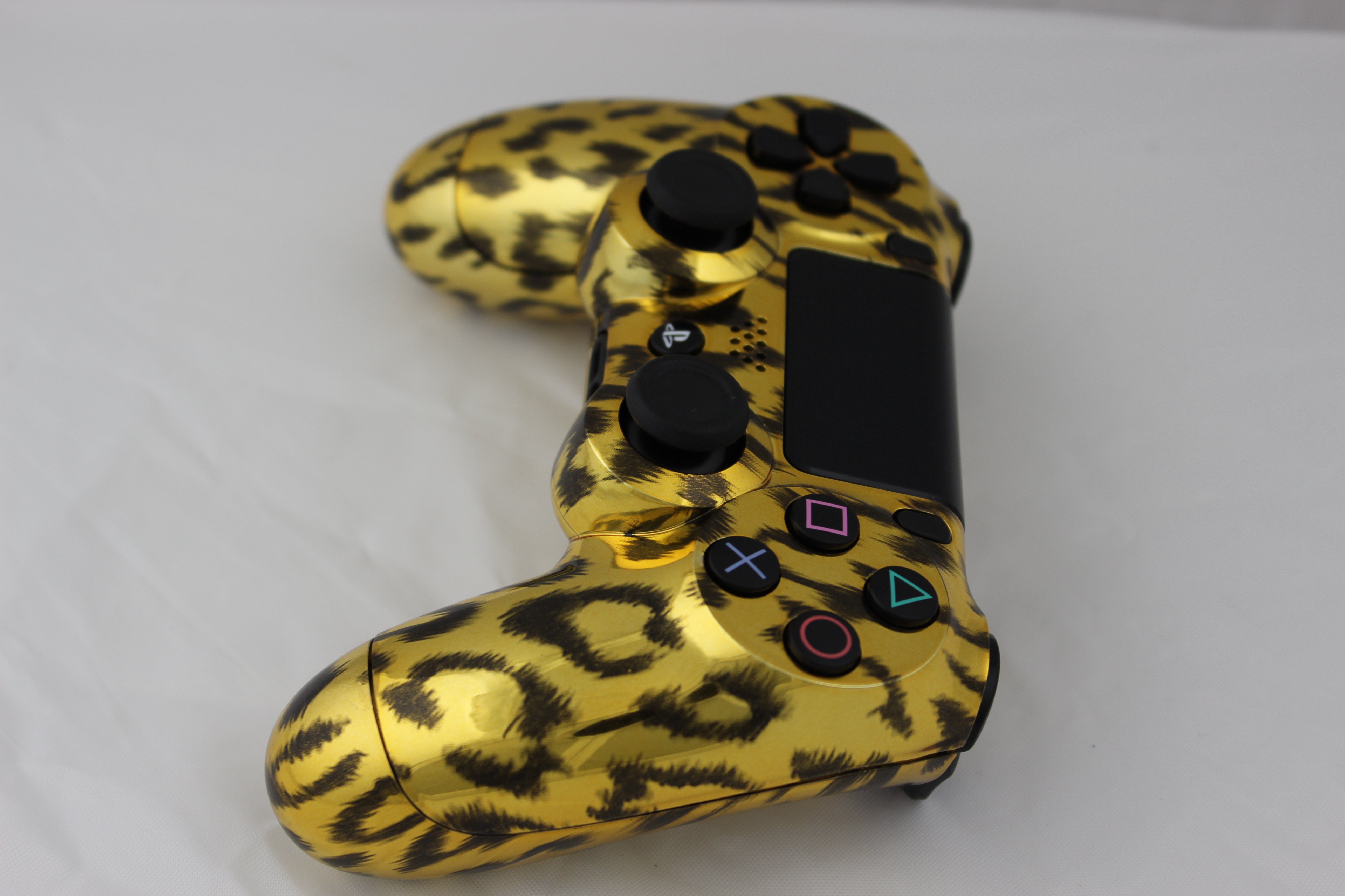 Gold Chrome Naughty Leopard PlayStation 4 Controller photos and movies