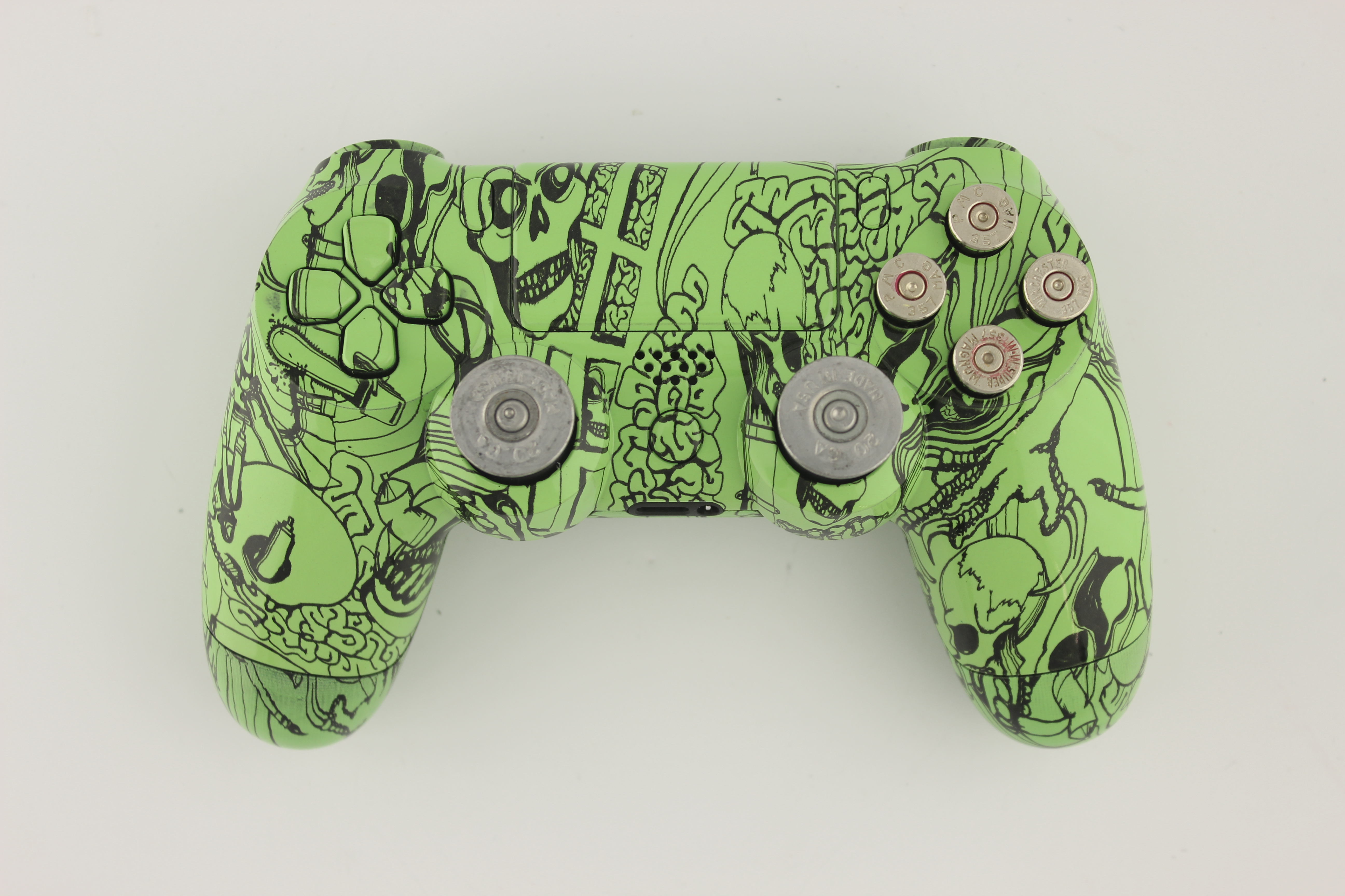 Green Kooky Skulls PlayStation 4 Controller with Nickel Bullet Buttons 11