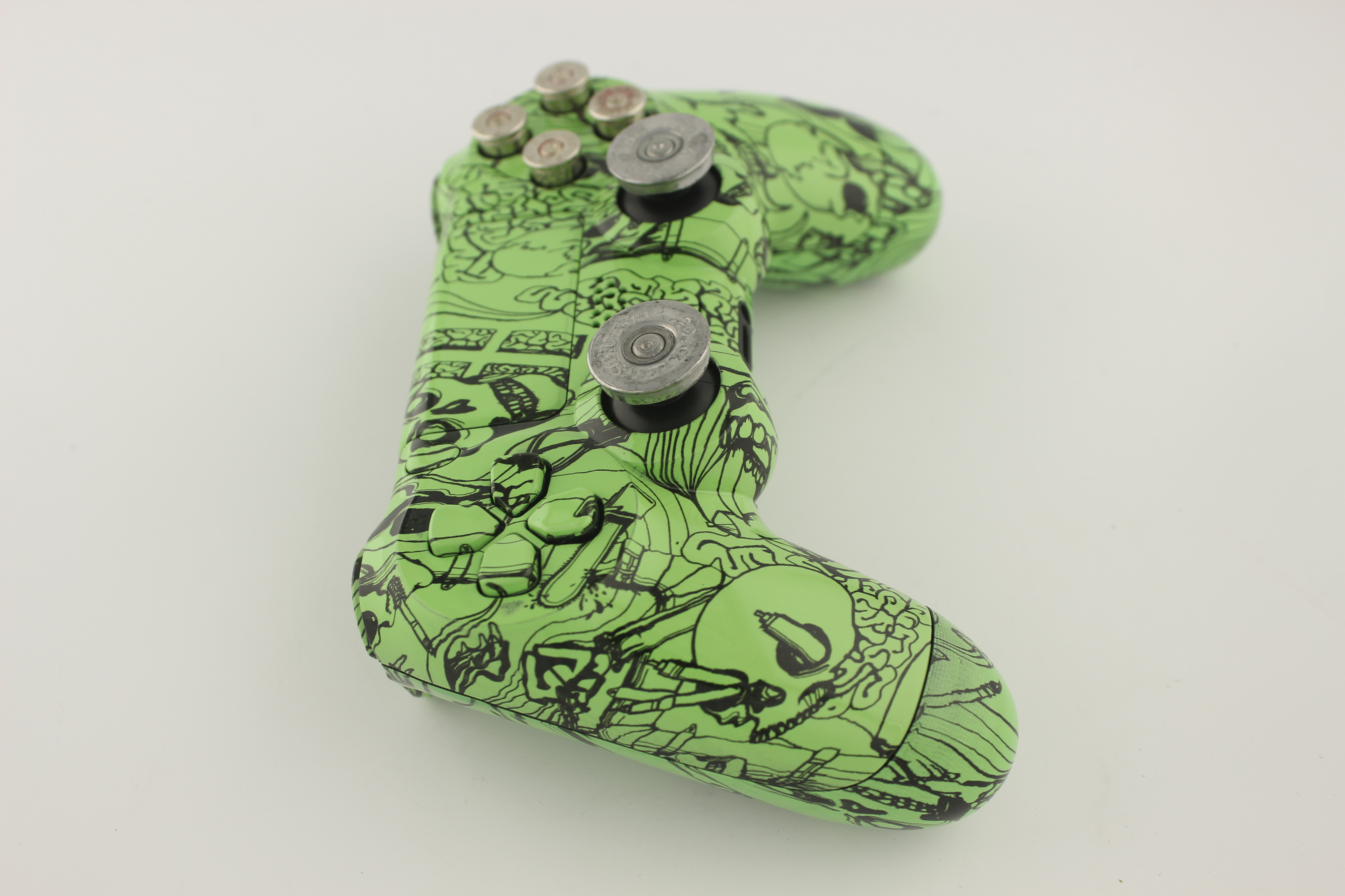 Green Kooky Skulls PlayStation 4 Controller with Nickel Bullet Buttons photos and movies