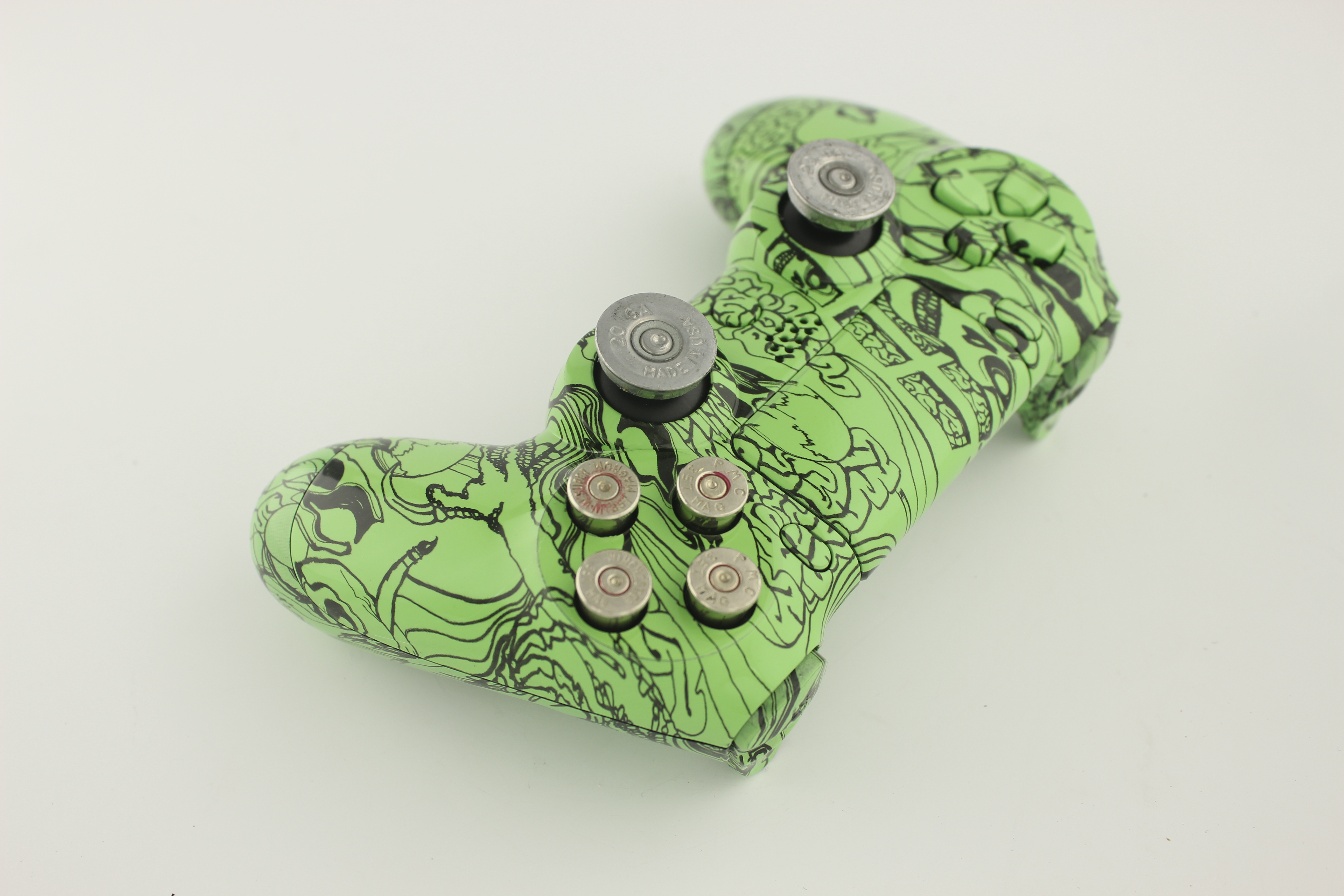 Green Kooky Skulls PlayStation 4 Controller with Nickel Bullet Buttons photos and movies