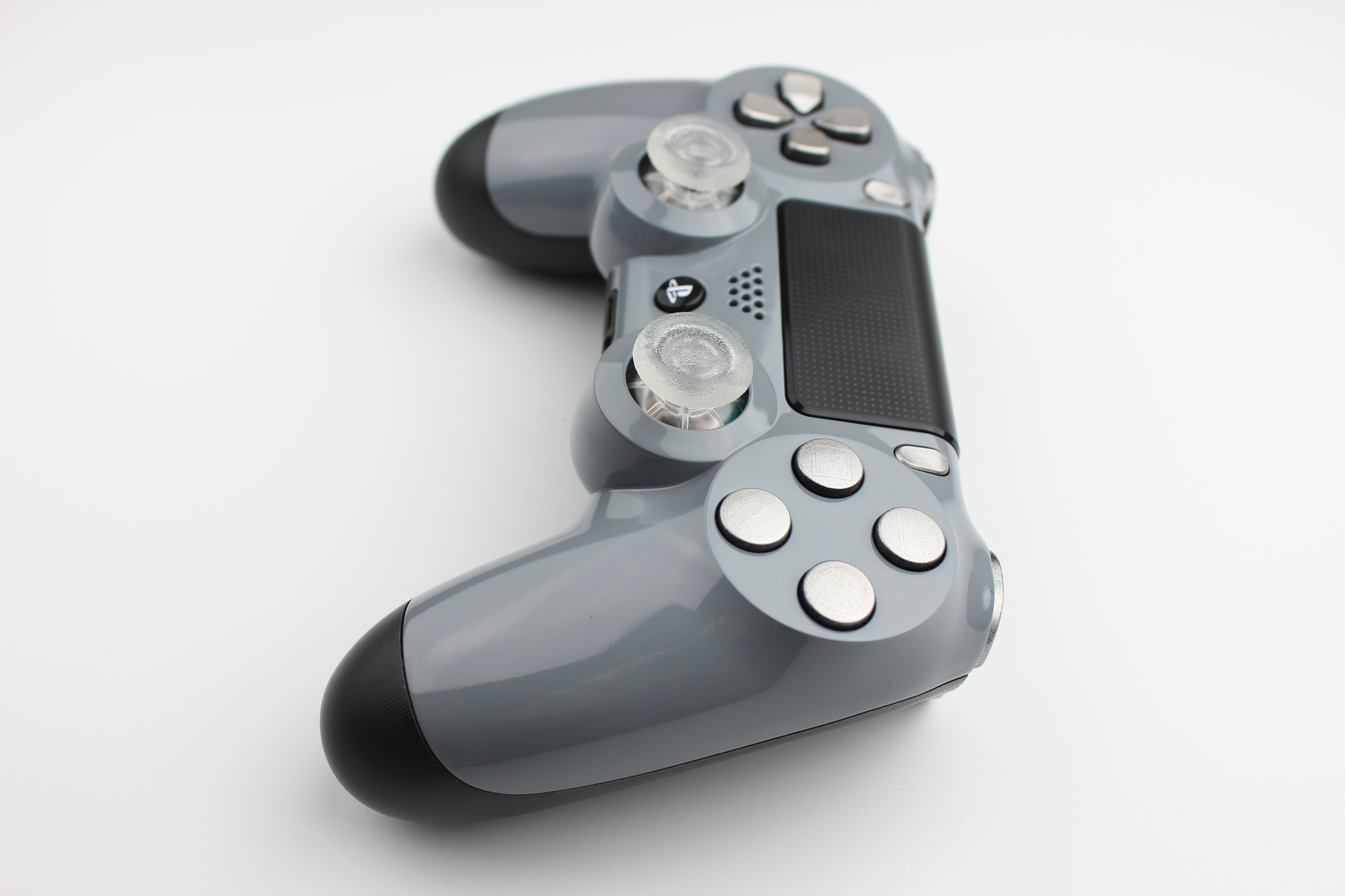 Grey PlayStation 4 Contoller with Silver Buttons and Lit Sticks 10