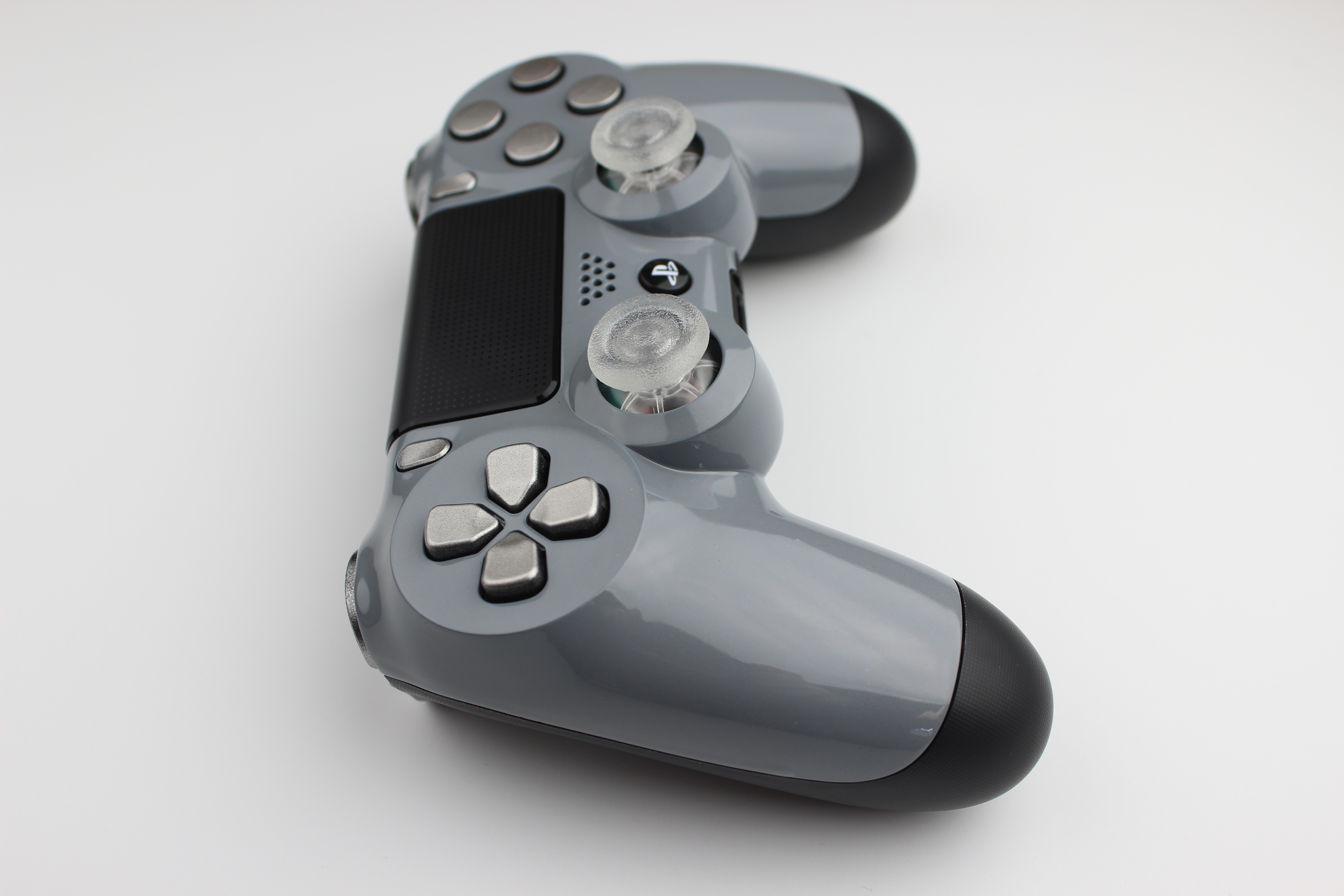 Grey PlayStation 4 Contoller with Silver Buttons and Lit Sticks 6