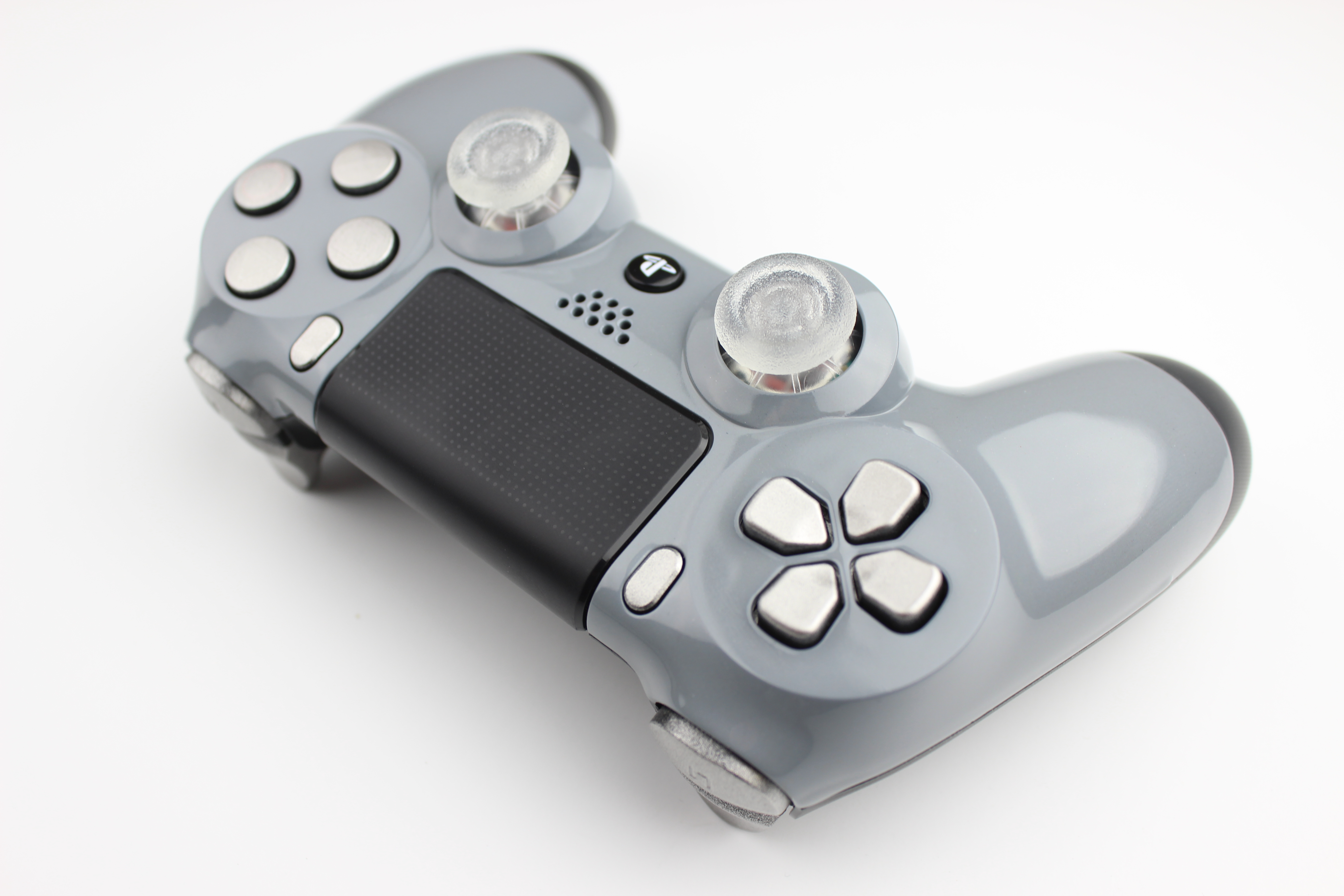 Grey PlayStation 4 Contoller with Silver Buttons and Lit Sticks 7