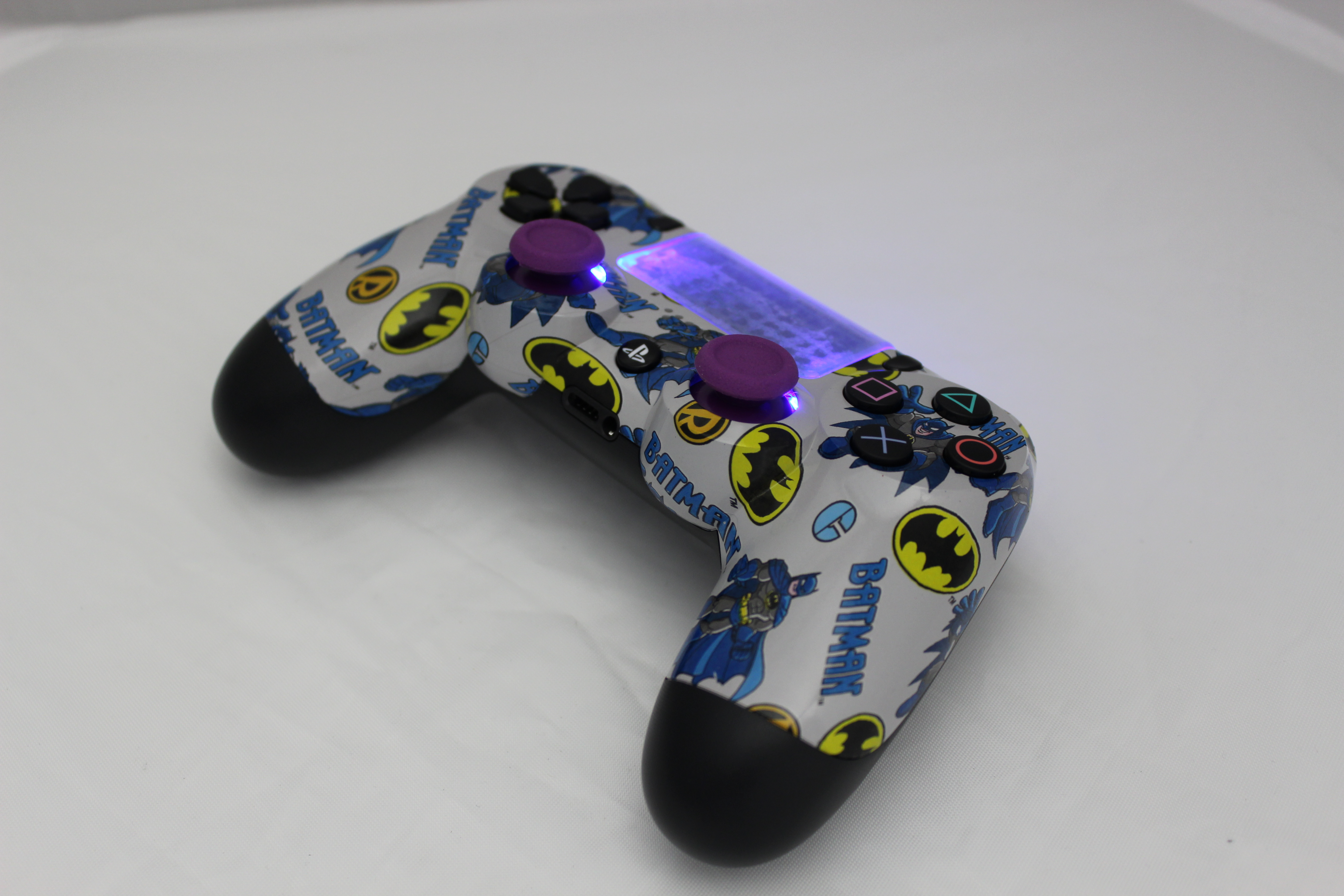 Lit Grey Batman PlayStation 4 Controller photos and movies