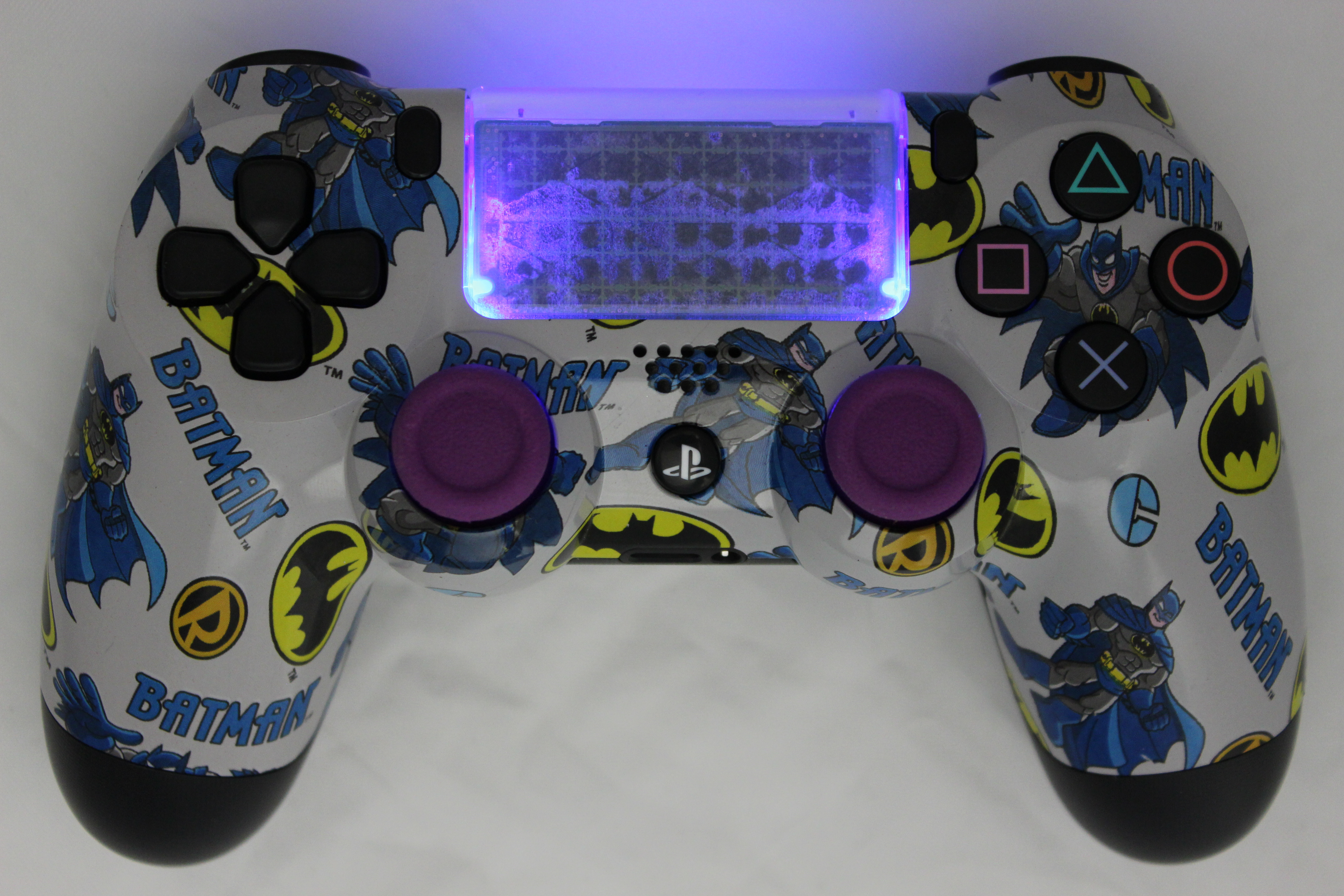 Lit Grey Batman PlayStation 4 Controller photos and movies